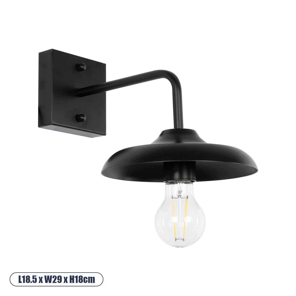GLOBOSTAR® PHIA 01122 Vintage Φωτιστικό Τοίχου – Απλίκα με Ντουί 1 x E27 AC 220-240V IP20 – Μαύρο – Μ18.5 x Π29 x Υ18cm