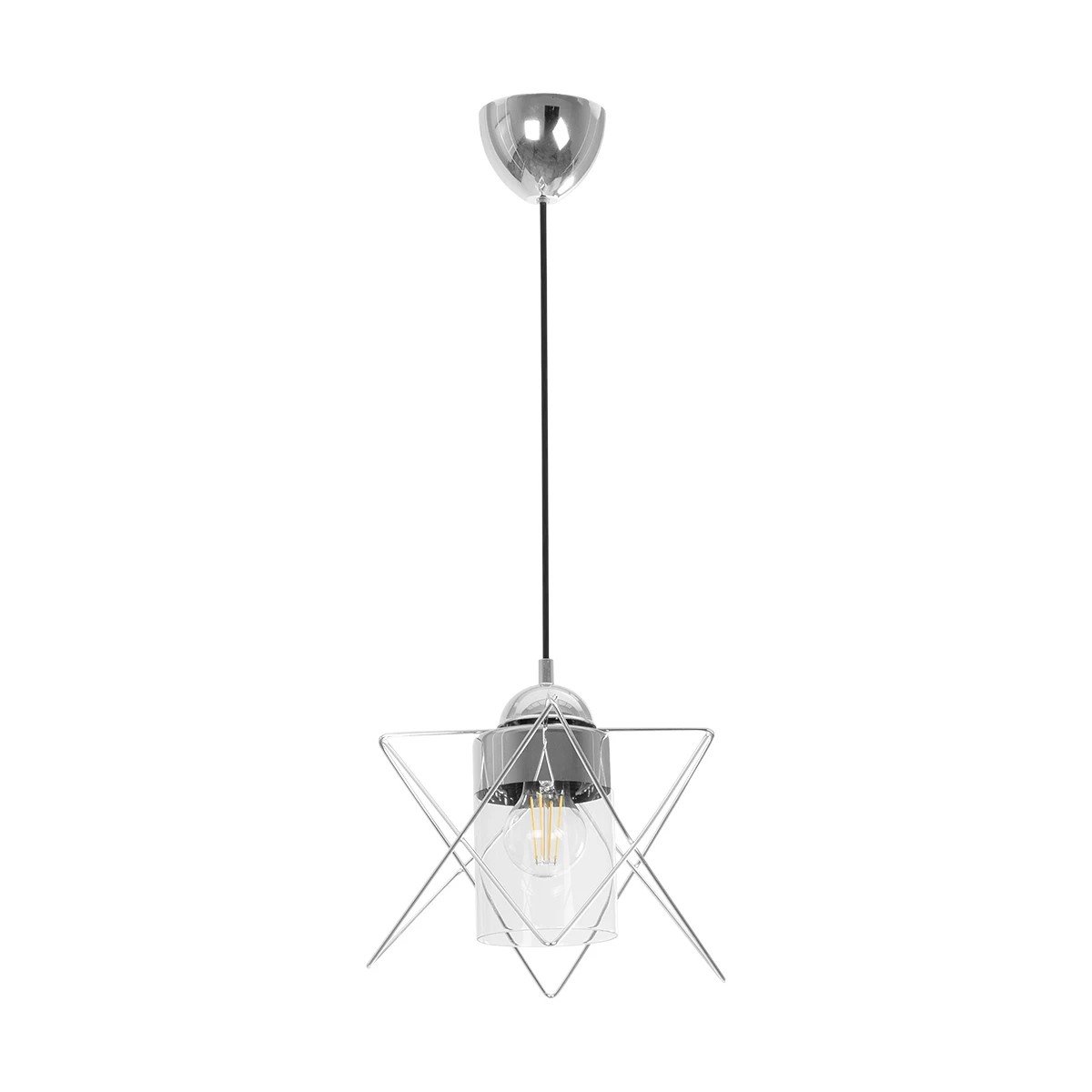 GLOBOSTAR® PLEX 202-0038 Μοντέρνο Κρεμαστό Φωτιστικό Οροφής με Ντουί 1 x E27 AC 220-240V IP20 – Ασημί & Διάφανο – Μ25 x Π25 x Υ23cm