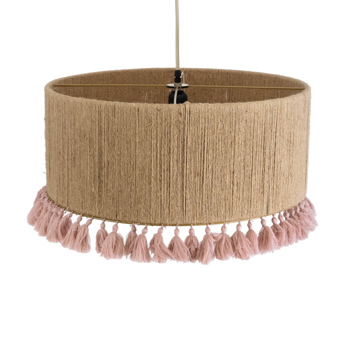 GLOBOSTAR® PUERTORICO 02096 Boho Κρεμαστό Φωτιστικό Οροφής με Ντουί 1 x E27 AC 220-240V IP20 – Μπεζ & Ροζ – Μ50 x Π50 x Υ27cm