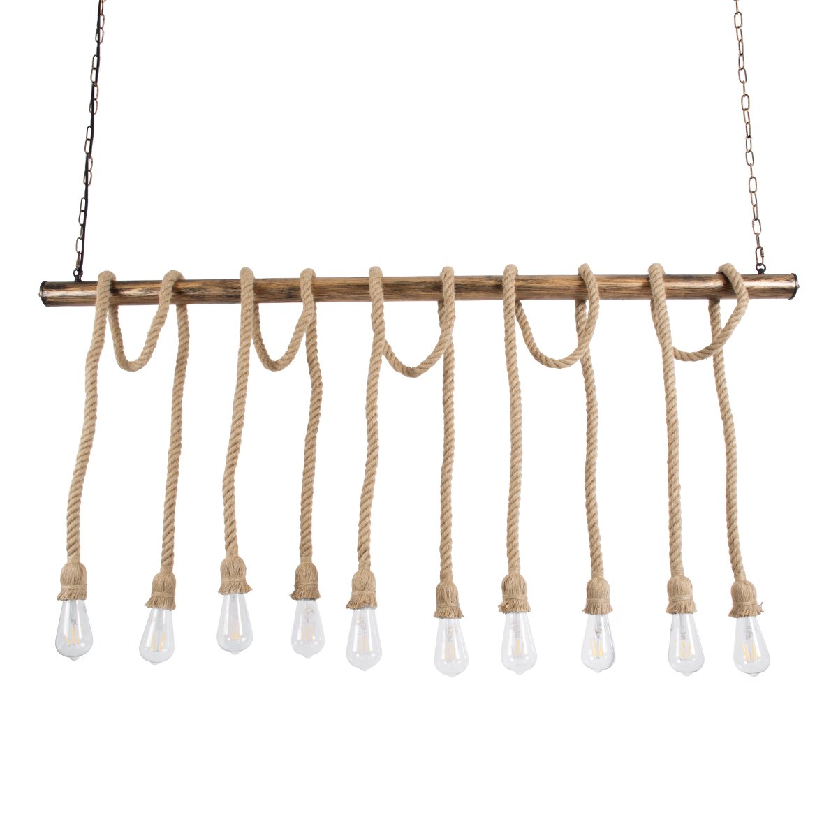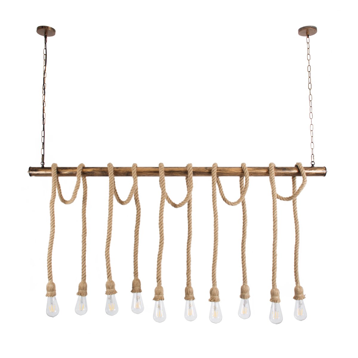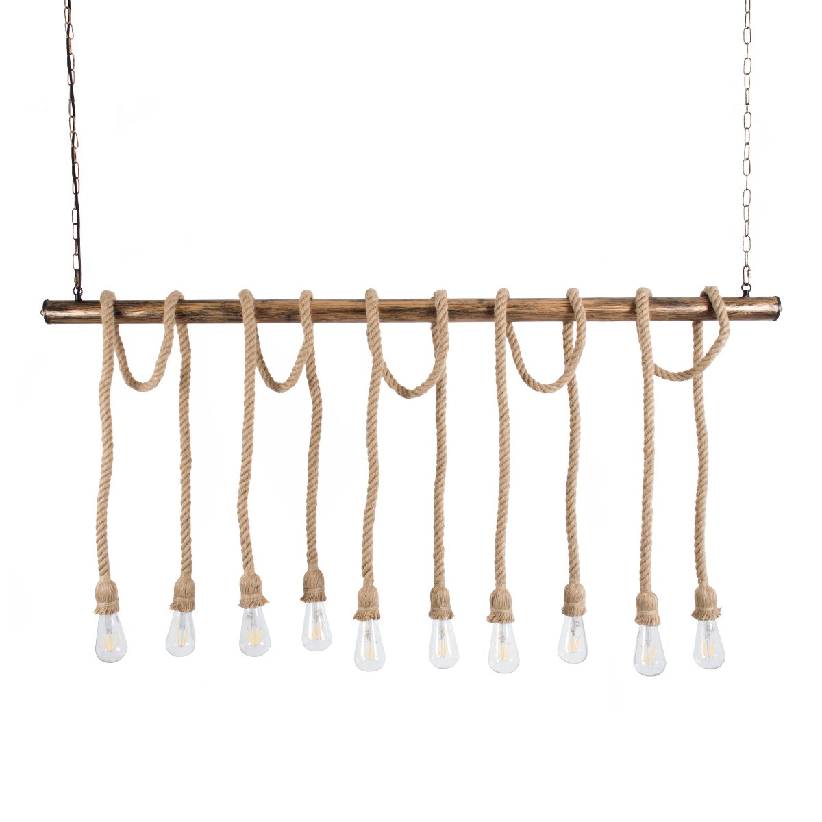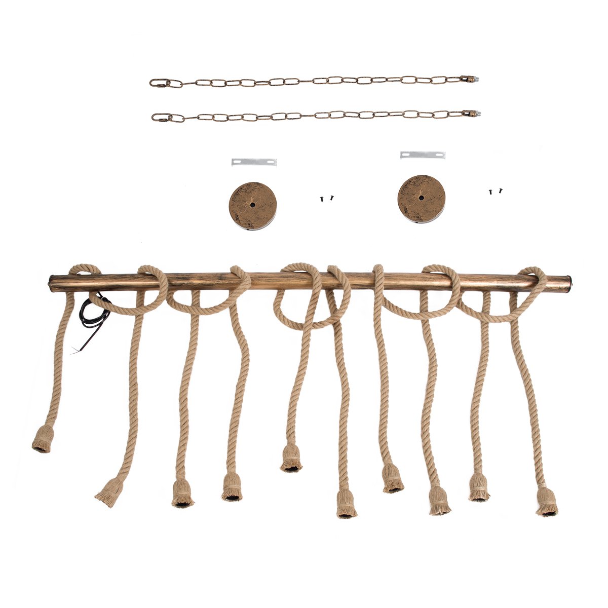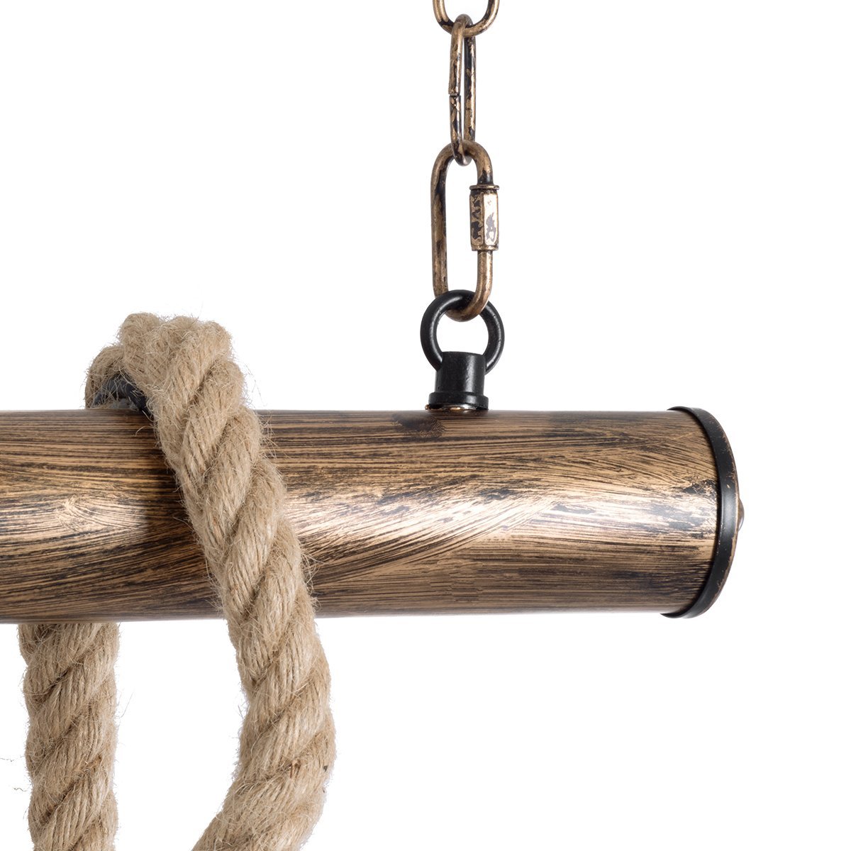 GloboStar® RAILROAD 01380 Vintage Industrial Κρεμαστό Φωτιστικό Οροφής Πολύφωτο Μπρούτζινο Μεταλλικό με Μπεζ Σχοινί Μ150 x Π4 x Y62.5cm