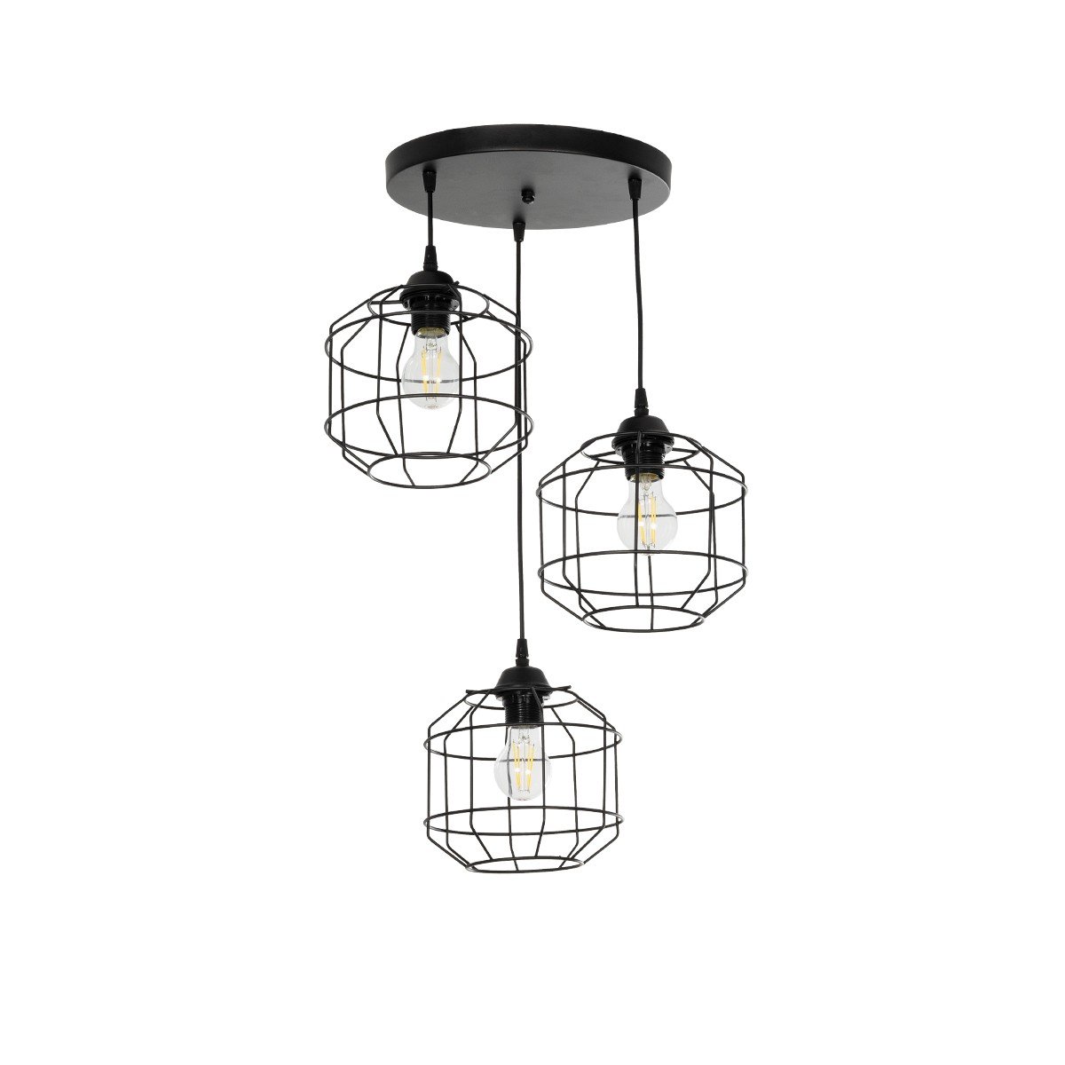 GLOBOSTAR® RAYNO 201-0108 Vintage Κρεμαστό Φωτιστικό Οροφής με Ντουί 3 x E27 AC 220-240V IP20 – Μαύρο – Μ42 x Π42 x Υ60cm