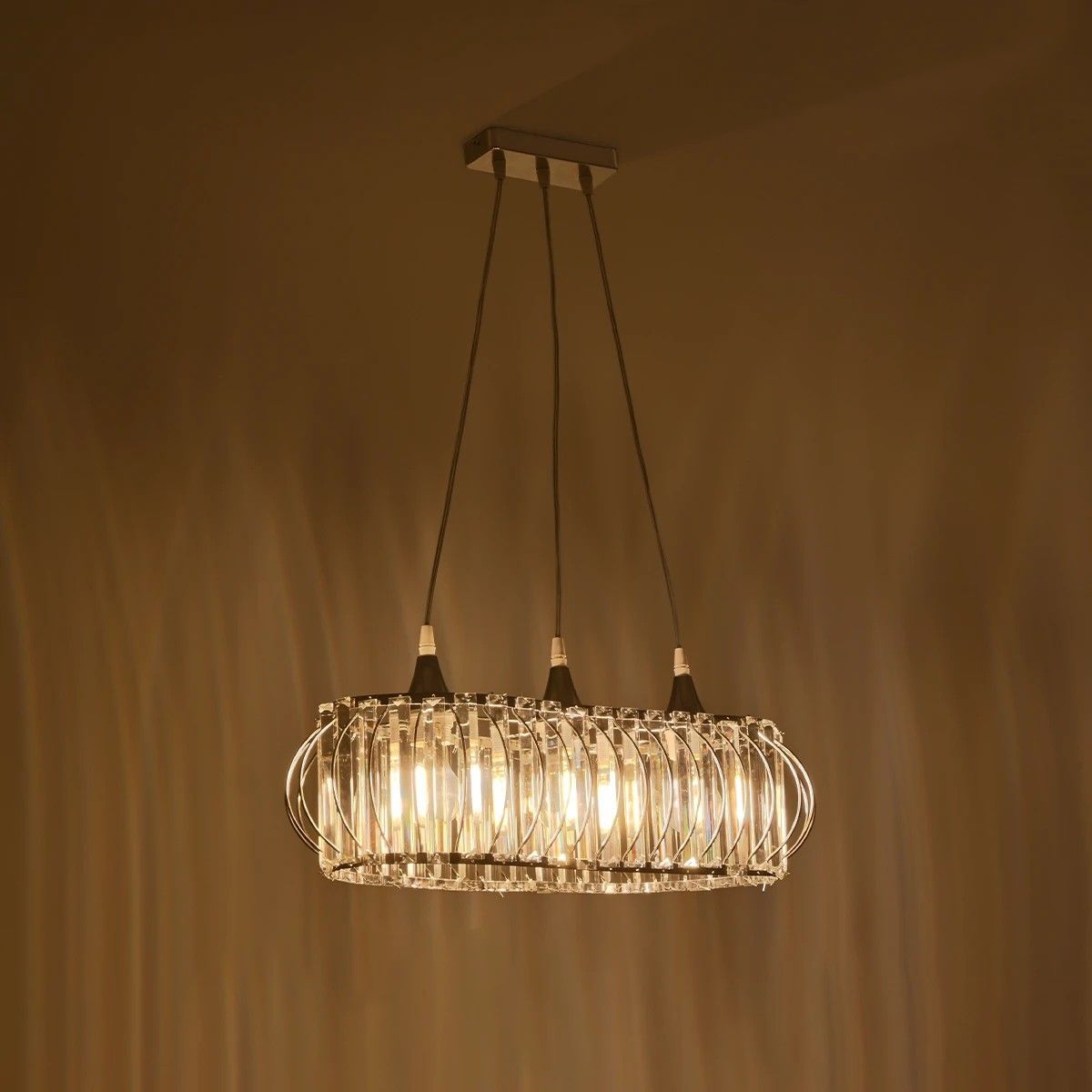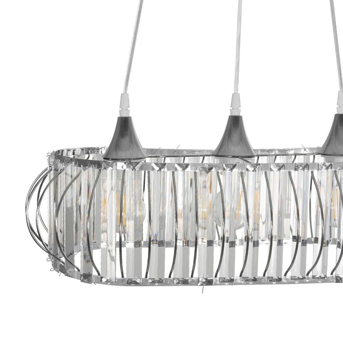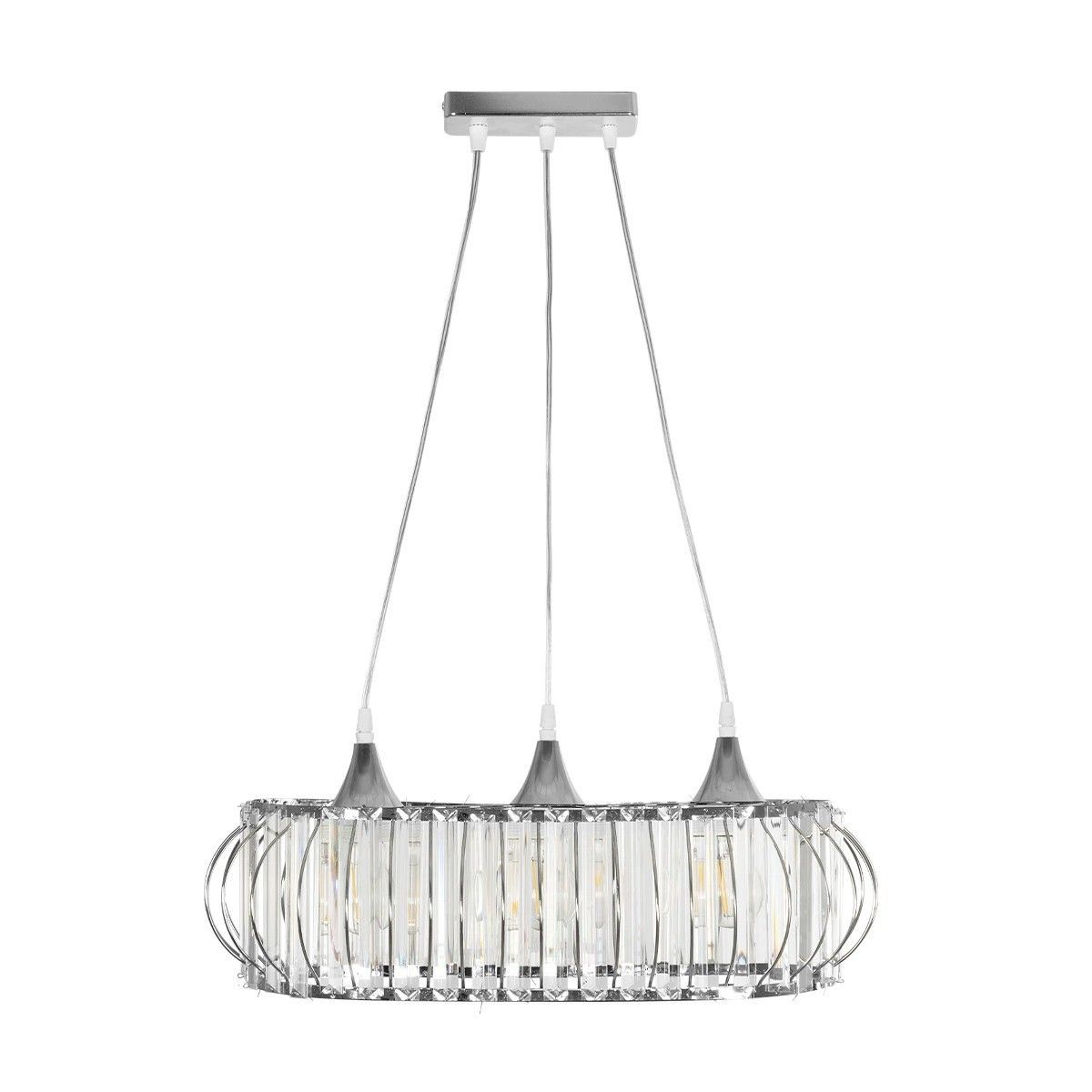 GLOBOSTAR® RAZIA 201-0101 Vintage Κρεμαστό Φωτιστικό Οροφής με Ντουί 3 x E27 AC 220-240V IP20 – Ασημί & Διάφανο – Μ60 x Π30 x Υ25cm