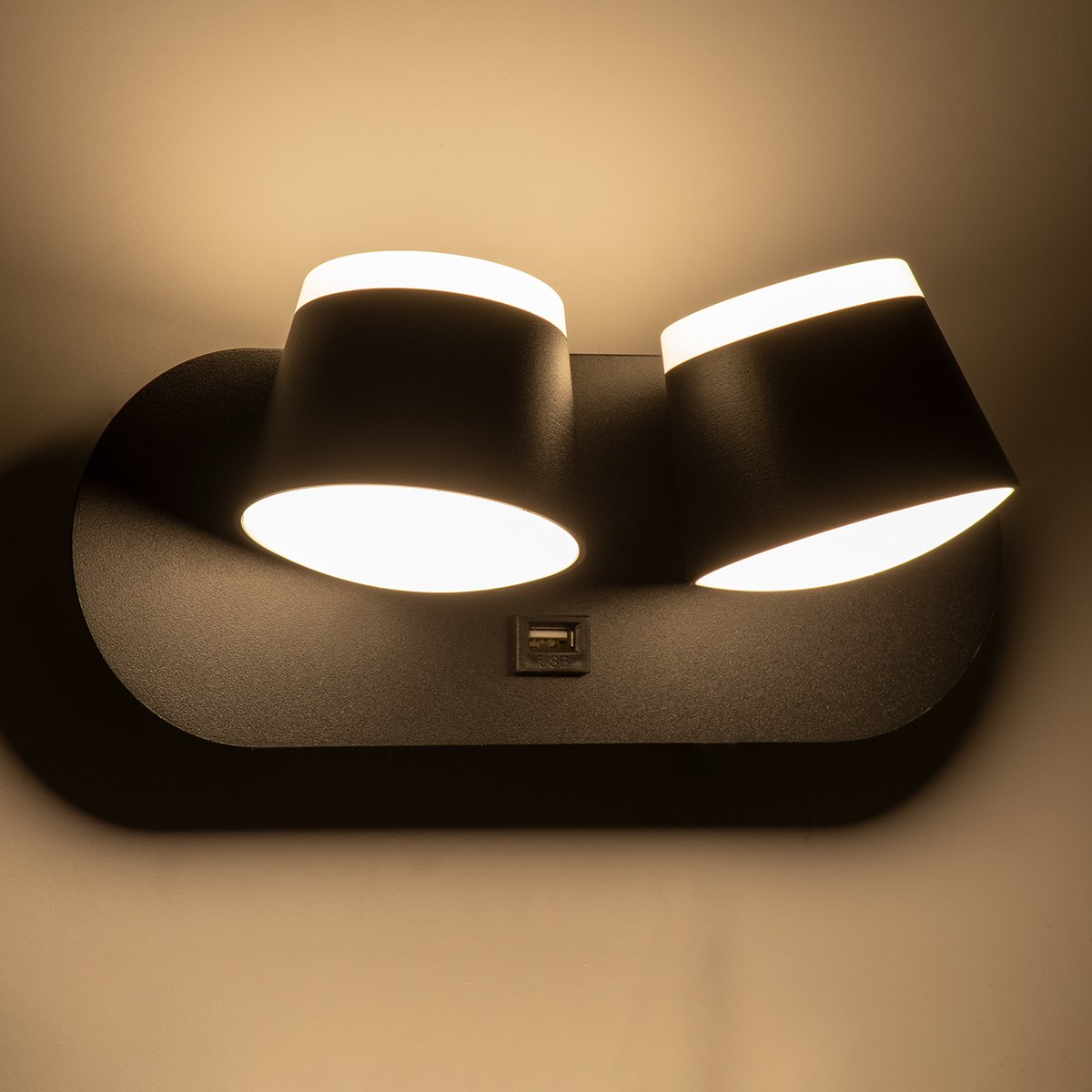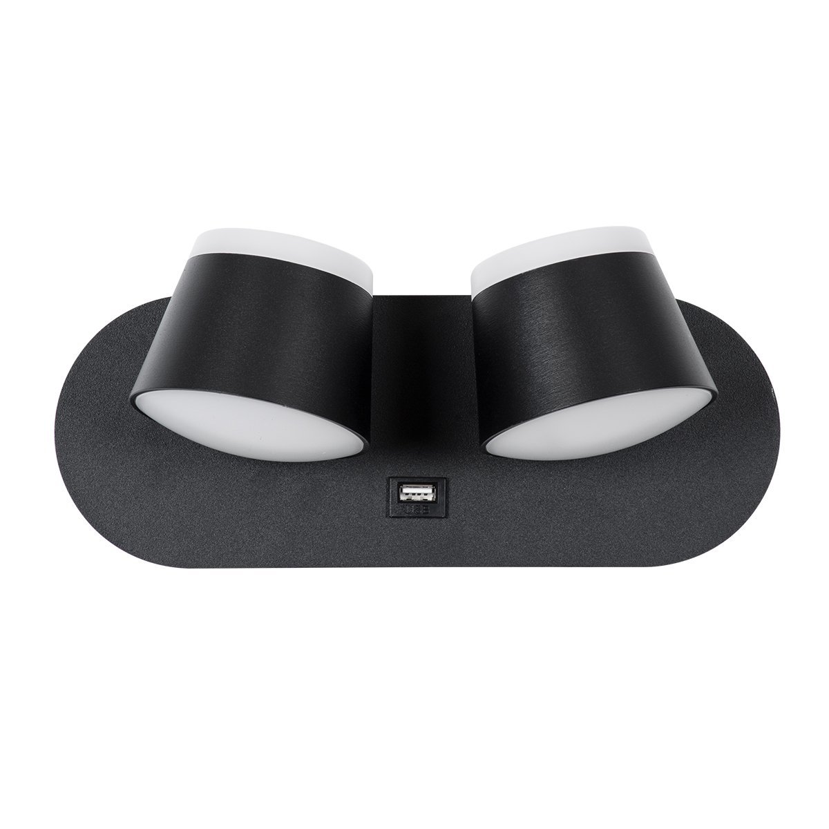 GLOBOSTAR® REGENCY 61376 Μοντέρνο Φωτιστικό Τοίχου – Απλίκα Ξενοδοχείου Reading Light με Φορτιστή USB 3A LED 16W 1840lm 120° AC 220-240V IP20 Φυσικό Λευκό 4500K – Bridgelux SMD Chip & TÜV SÜD Driver – Μαύρο Ματ – Μ16.5 x Π12 x Υ10cm – 3 Χρόνια Εγγύηση