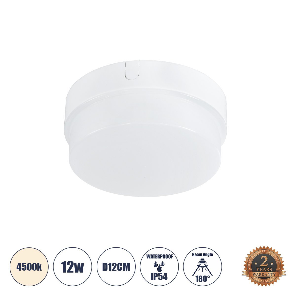 GLOBOSTAR® REVANO 61012 Φωτιστικό Πλαφονιέρα Οροφής LED 12W 1140lm 180° AC 220-240V Αδιάβροχο IP54 Φυσικό Λευκό 4500K – Lumileds SMD Chip – Λευκό Γαλακτερό – Μ12 x Π12 x Υ4.5cm – 2 Χρόνια Εγγύηση