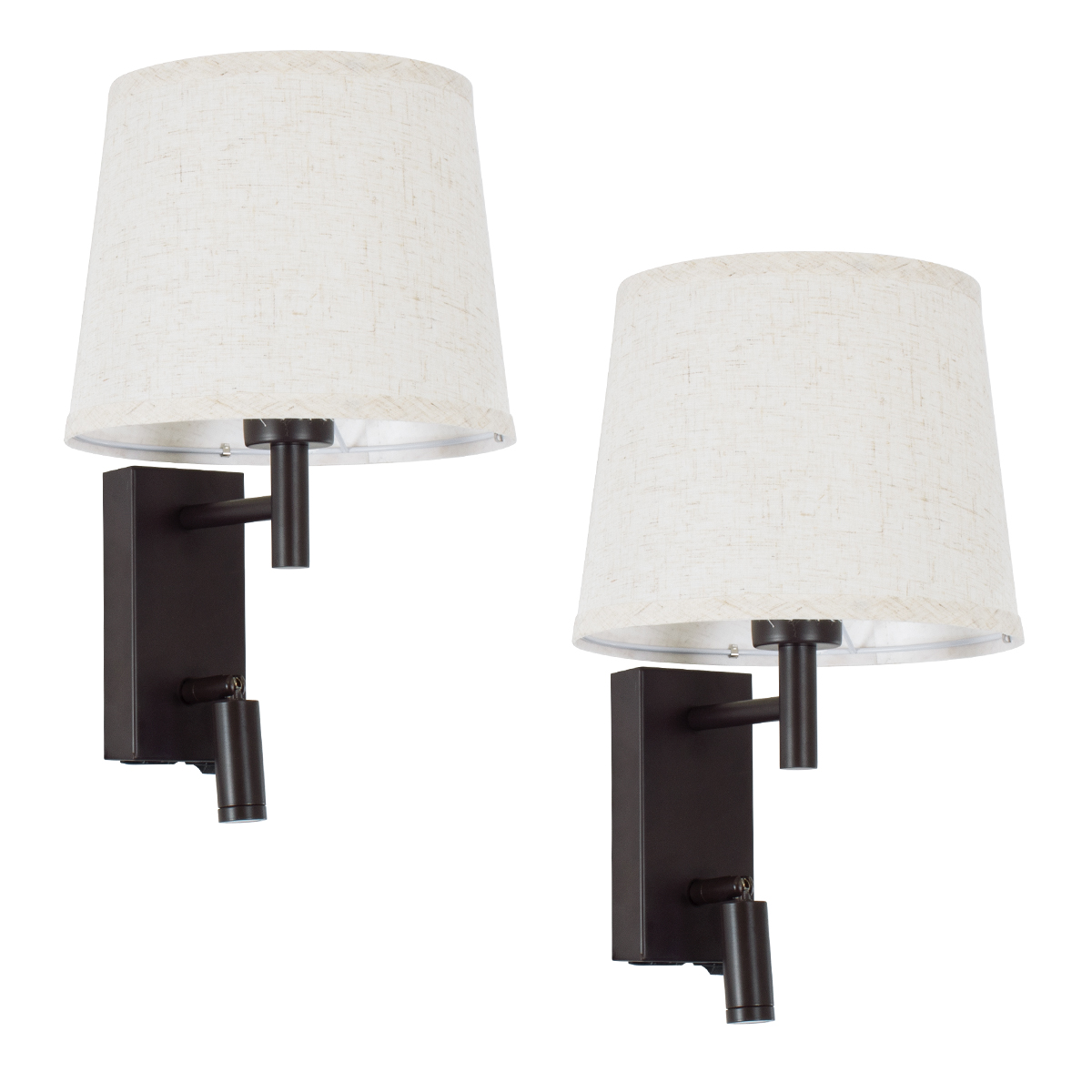 GLOBOSTAR® ROULETTE-R 61381 Μοντέρνο Φωτιστικό Τοίχου – Απλίκα Ξενοδοχείου Reading Light με Φορτιστή USB 3A & Ντουί 1 x E27 LED 3W 360lm 36° & 360° AC 220-240V IP20 Φυσικό Λευκό 4500K – Bridgelux COB Chip & TÜV SÜD Driver – Καφέ & Μπεζ – Μ22 x Π23.5 x Υ37cm – Σετ 2 Τεμαχίων – 3 Χρόνια Εγγύηση