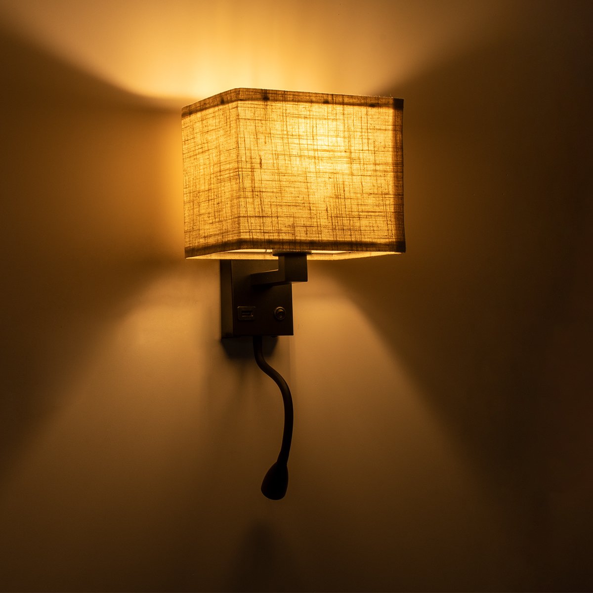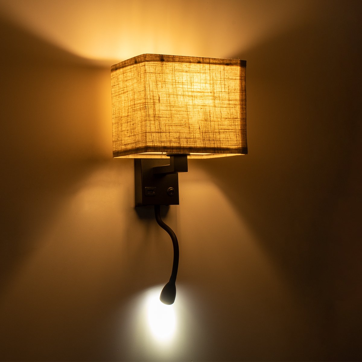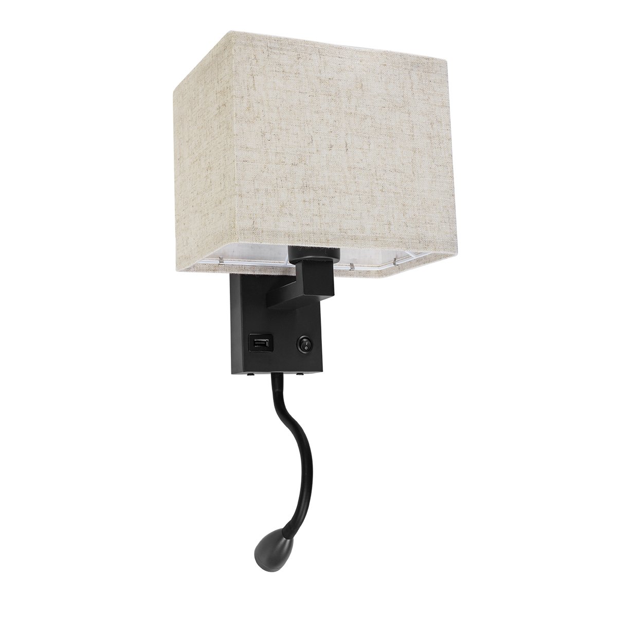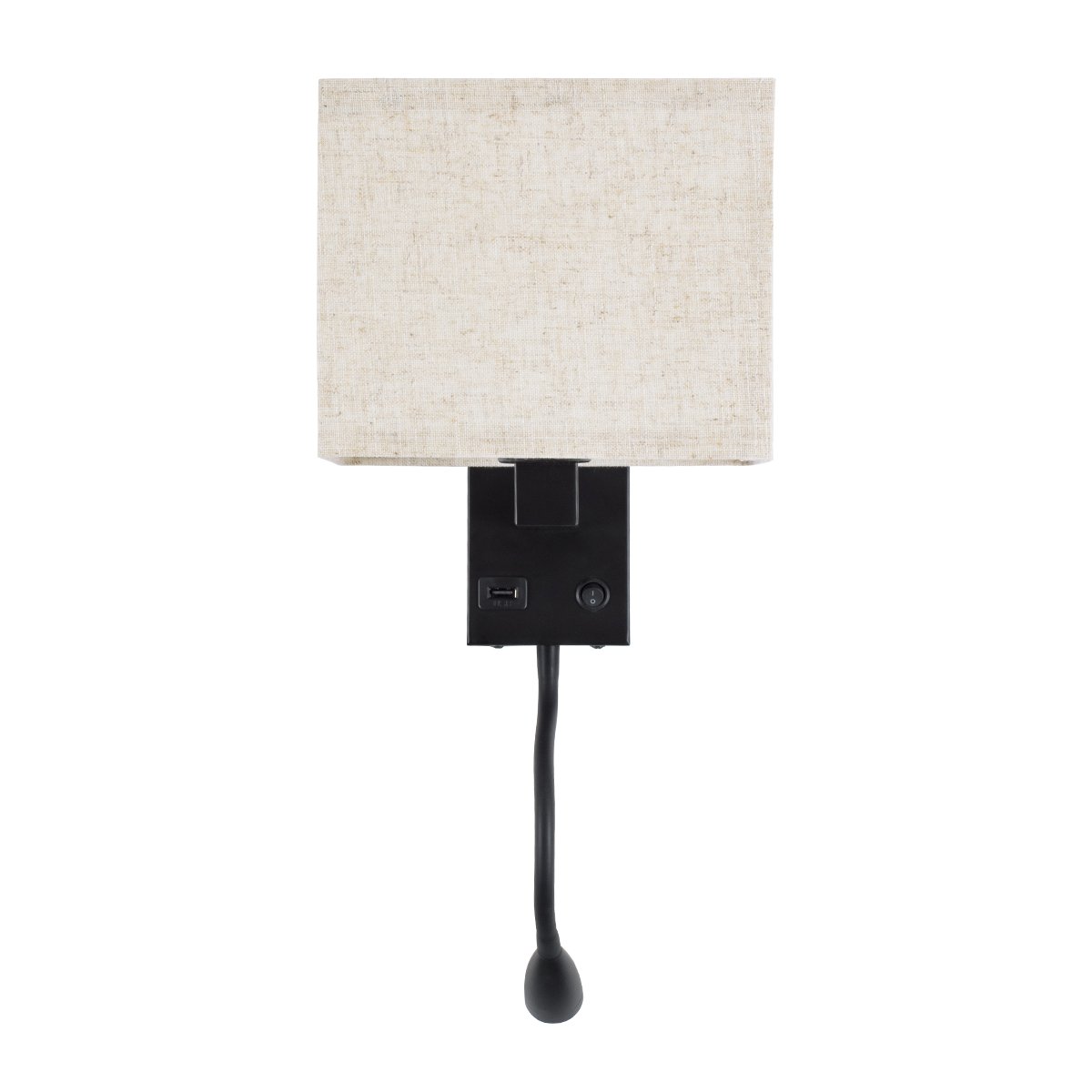 GLOBOSTAR® ROULETTE-S 61382 Μοντέρνο Φωτιστικό Τοίχου – Απλίκα Ξενοδοχείου Reading Light με Φορτιστή USB 3A & Ντουί 1 x E27 LED 3W 360lm 36° & 360° AC 220-240V IP20 Φυσικό Λευκό 4500K – Bridgelux COB Chip & TÜV SÜD Driver – Μαύρο & Μπεζ – Μ17 x Π20 x Υ37cm – Σετ 2 Τεμαχίων – 3 Χρόνια Εγγύηση