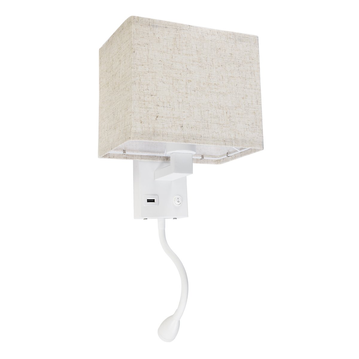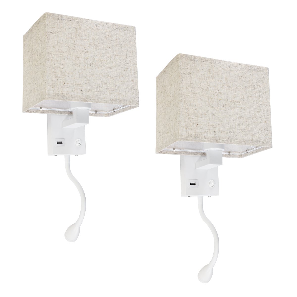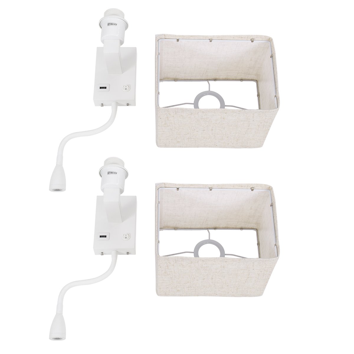 GLOBOSTAR® ROULETTE-S 61383 Μοντέρνο Φωτιστικό Τοίχου – Απλίκα Ξενοδοχείου Reading Light με Φορτιστή USB 3A & Ντουί 1 x E27 LED 3W 360lm 36° & 360° AC 220-240V IP20 Φυσικό Λευκό 4500K – Bridgelux COB Chip & TÜV SÜD Driver – Λευκό & Μπεζ – Μ17 x Π20 x Υ37cm – Σετ 2 Τεμαχίων – 3 Χρόνια Εγγύηση