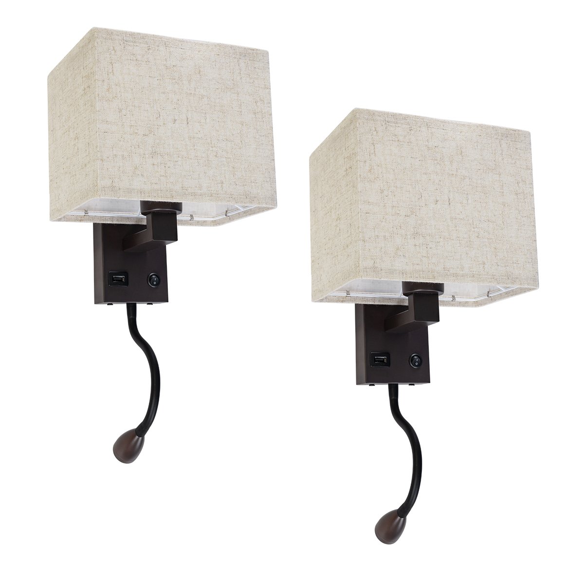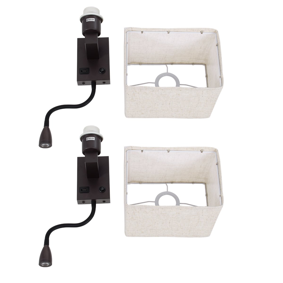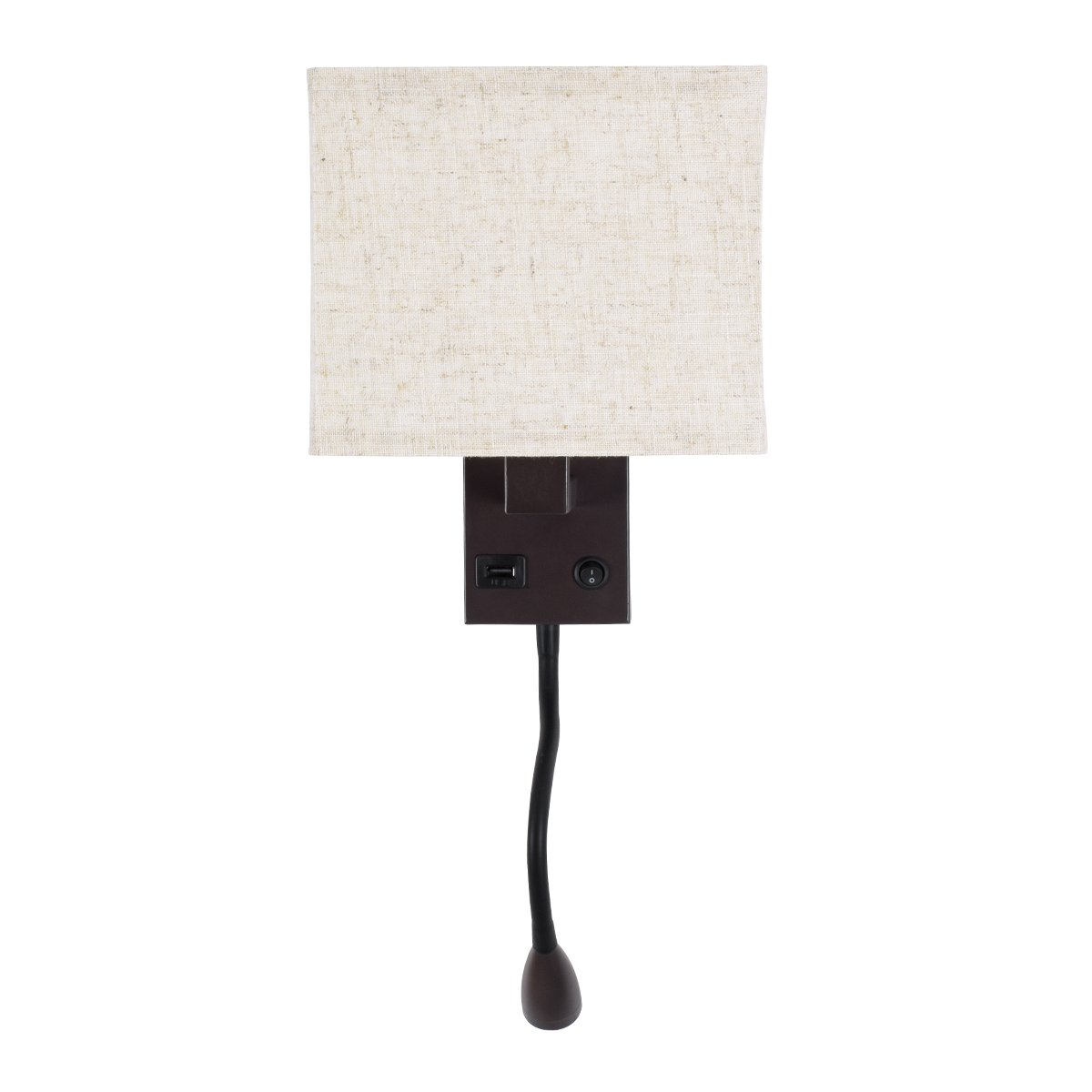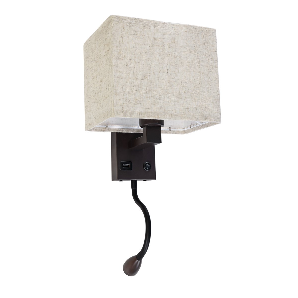GLOBOSTAR® ROULETTE-S 61384 Μοντέρνο Φωτιστικό Τοίχου – Απλίκα Ξενοδοχείου Reading Light με Φορτιστή USB 3A & Ντουί 1 x E27 LED 3W 360lm 36° & 360° AC 220-240V IP20 Φυσικό Λευκό 4500K – Bridgelux COB Chip & TÜV SÜD Driver – Καφέ & Μπεζ – Μ17 x Π20 x Υ37cm – Σετ 2 Τεμαχίων – 3 Χρόνια Εγγύηση