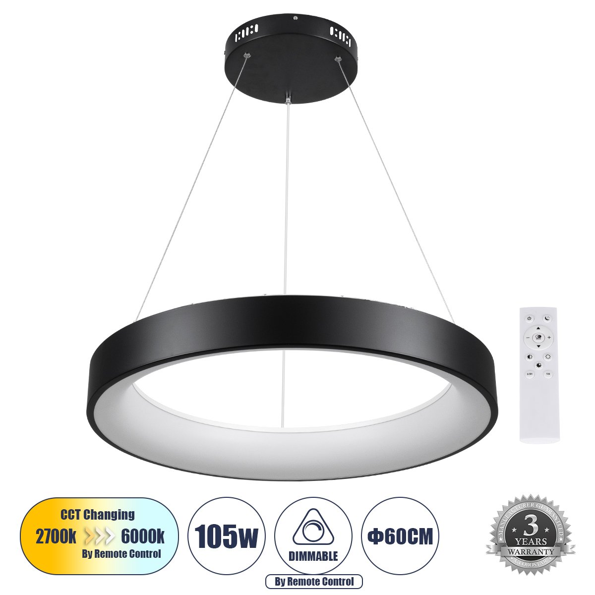 GLOBOSTAR® SALEM 61245 Μοντέρνο Κρεμαστό Φωτιστικό Οροφής LED 105W 12075lm 120° AC 220-240V IP20 Ρυθμιζόμενο Λευκό CCT με Χειριστήριο από 2700K έως 6000K Dimmable – Lumileds SMD Chip – Μαύρο Ματ – Μ60 x Π60 x Υ7cm – 3 Χρόνια Εγγύηση