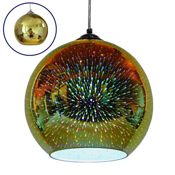 GloboStar® SATURN 01351 Μοντέρνο Κρεμαστό Φωτιστικό Οροφής Μονόφωτο Γυάλινο Νίκελ Χρυσό 3D Φ25 x Υ22cm