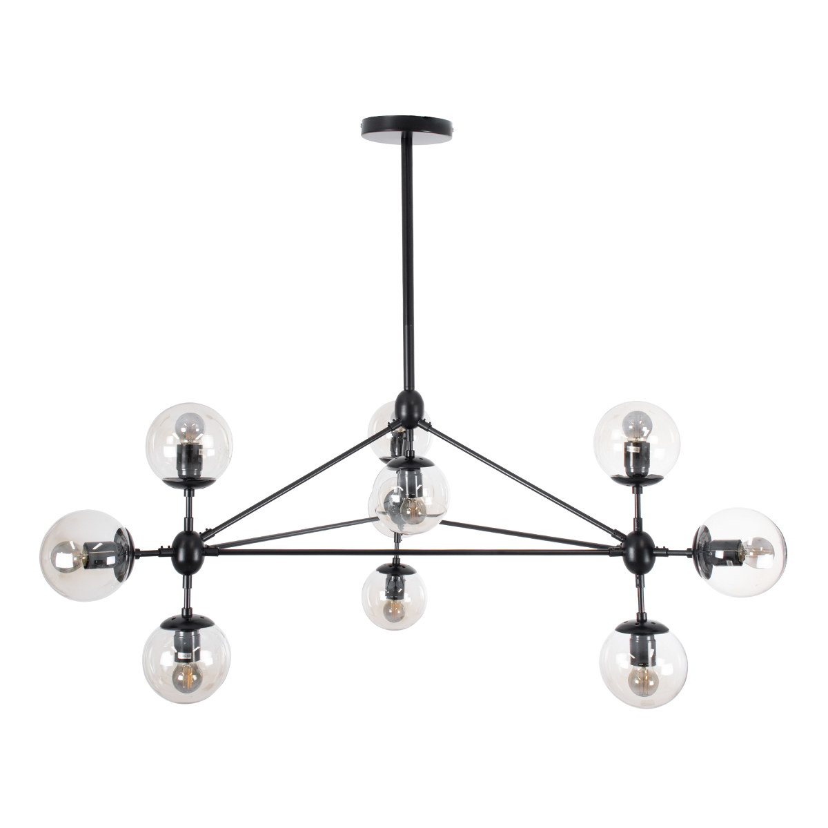 GLOBOSTAR® SENTINEL 01636 Μοντέρνο Φωτιστικό Οροφής με Ντουί 10 x E27 AC 220-240V IP20 – Μαύρο & Διάφανο – Μ105 x Π80 x Υ90cm