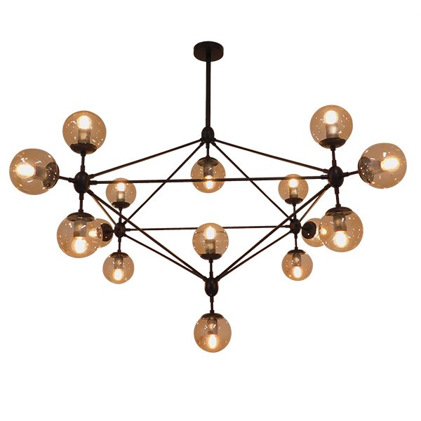 GLOBOSTAR® SENTINEL 01637 Μοντέρνο Φωτιστικό Οροφής με Ντουί 15 x E27 AC 220-240V IP20 – Μαύρο & Μελί – Μ150 x Π150 x Υ115cm