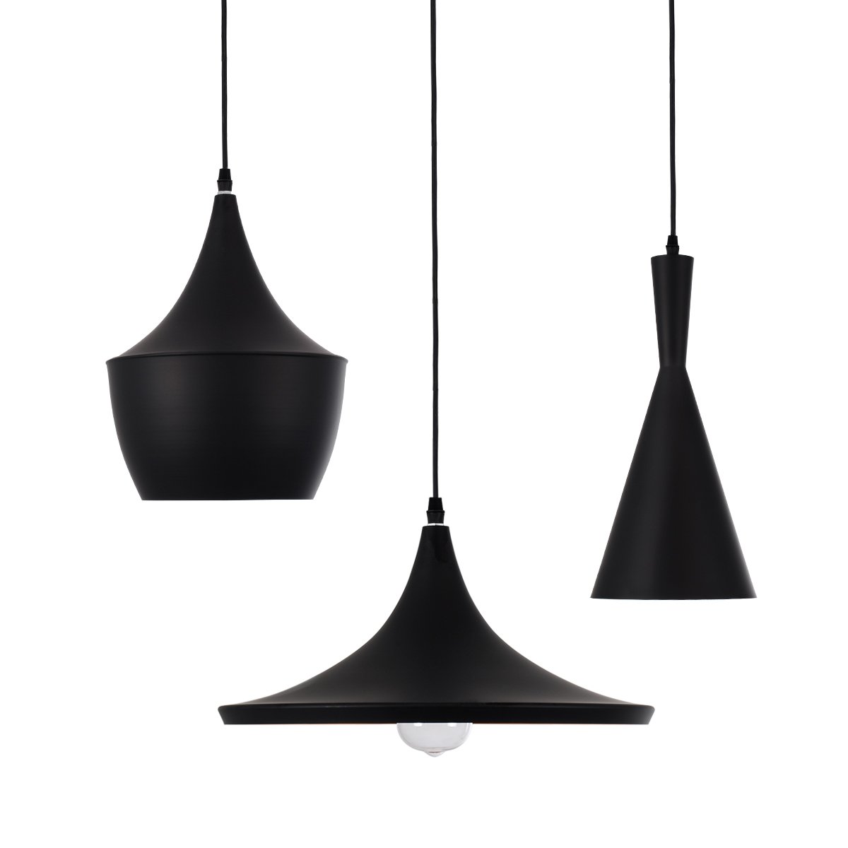 GloboStar® SHANGHAI BLACK 01025 SET 3 Μοντέρνα Κρεμαστά Φωτιστικά Οροφής Μονόφωτα Μαύρα Μεταλλικά Καμπάνα