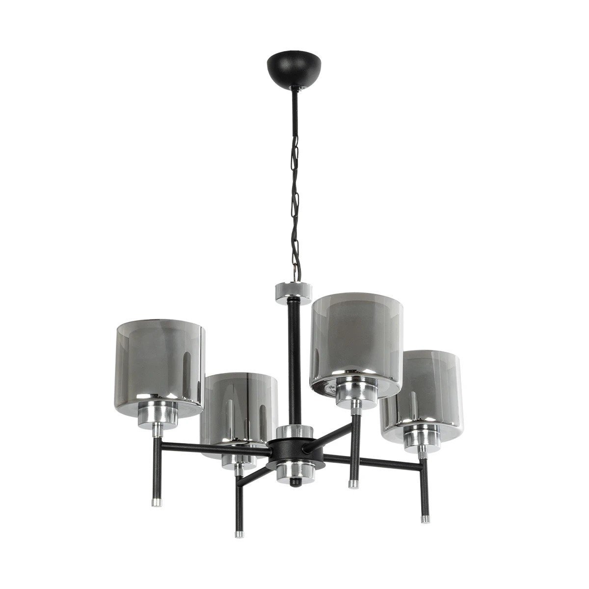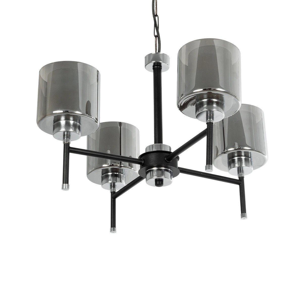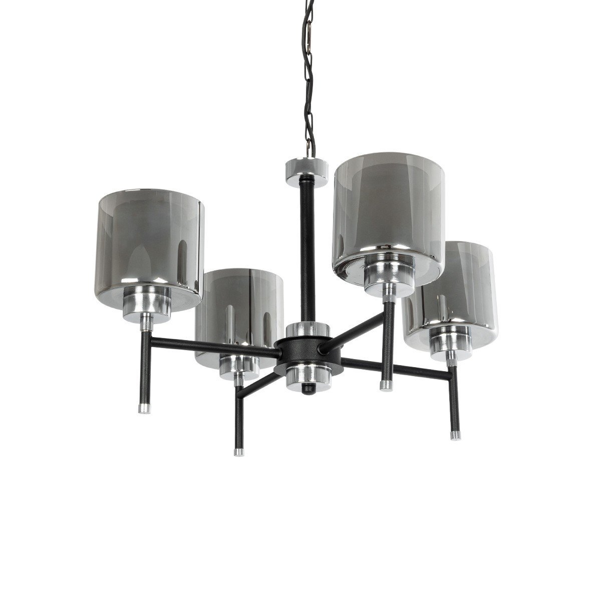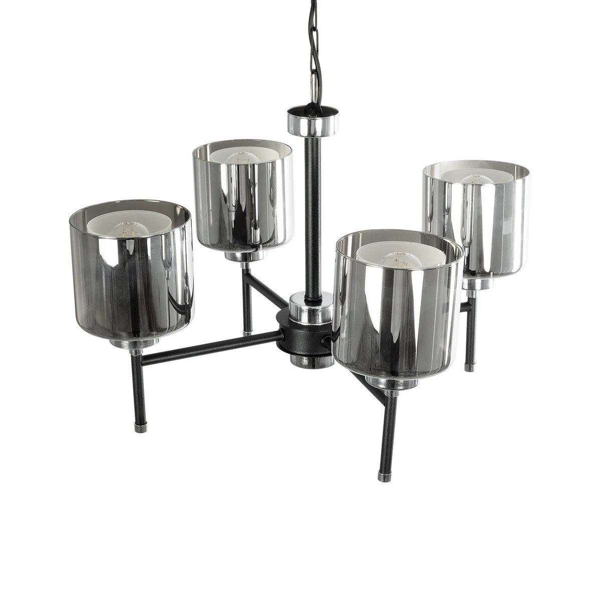 GLOBOSTAR® SHORD 202-0056 Μοντέρνο Κρεμαστό Φωτιστικό Οροφής με Ντουί 4 x E27 AC 220-240V IP20 – Μαύρο & Μαύρο Φιμέ – Μ57 x Π57 x Υ37cm