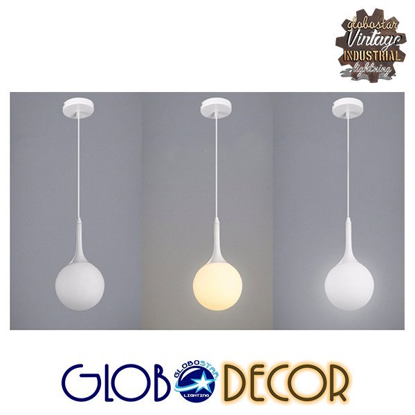 GloboStar® SPHERE 01143 Μοντέρνο Κρεμαστό Φωτιστικό Οροφής Μονόφωτο Λευκό Γυάλινο Φ25 x Y46.5cm