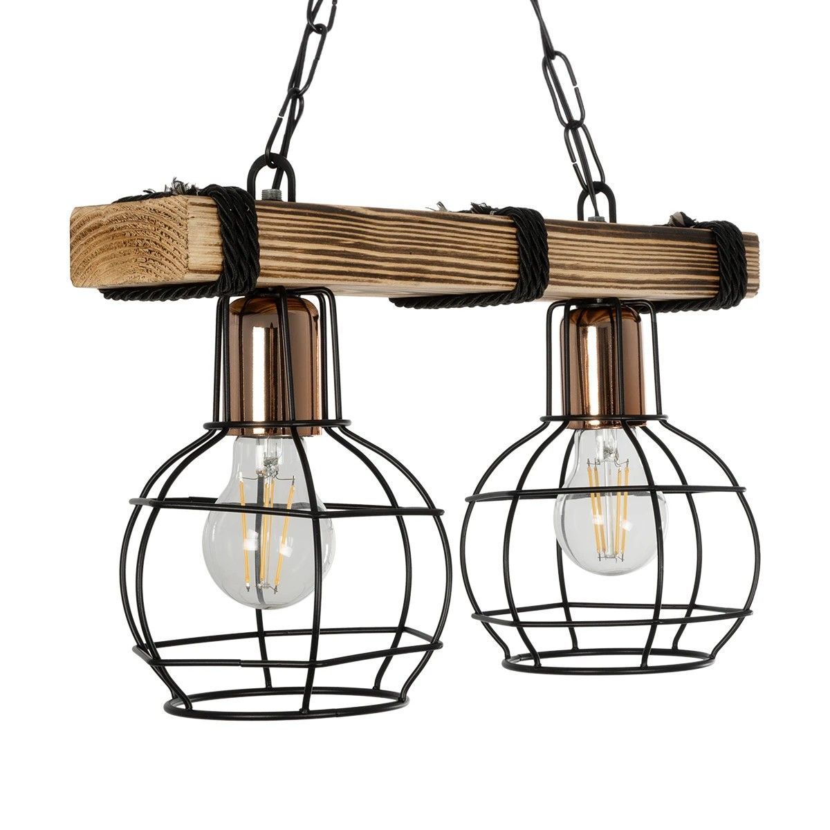 GLOBOSTAR® STARLO 201-0005 Vintage Κρεμαστό Φωτιστικό Οροφής με Ντουί 2 x E27 AC 220-240V IP20 – Μπεζ & Μαύρο – Μ38 x Π16 x Υ23cm