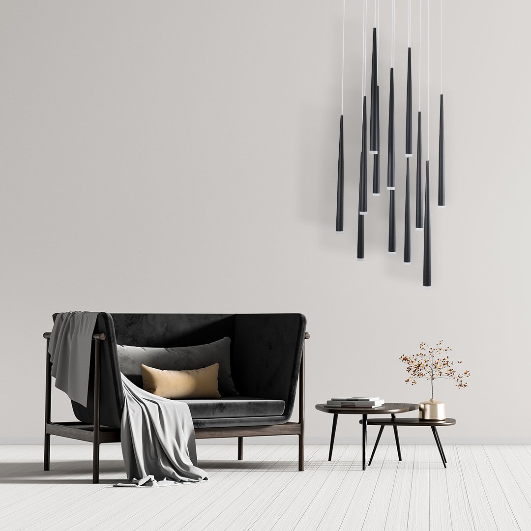 GLOBOSTAR® TEARS 61313 Μοντέρνο Κρεμαστό Φωτιστικό Οροφής LED 36W 3960lm 180° AC 220-240V IP20 Ρυθμιζόμενο Λευκό CCT με Χειριστήριο από 2700K έως 6000K Dimmable – Lumileds SMD Chip – Μαύρο – Μ60 x Π60 x Υ51.5cm – 3 Χρόνια Εγγύηση