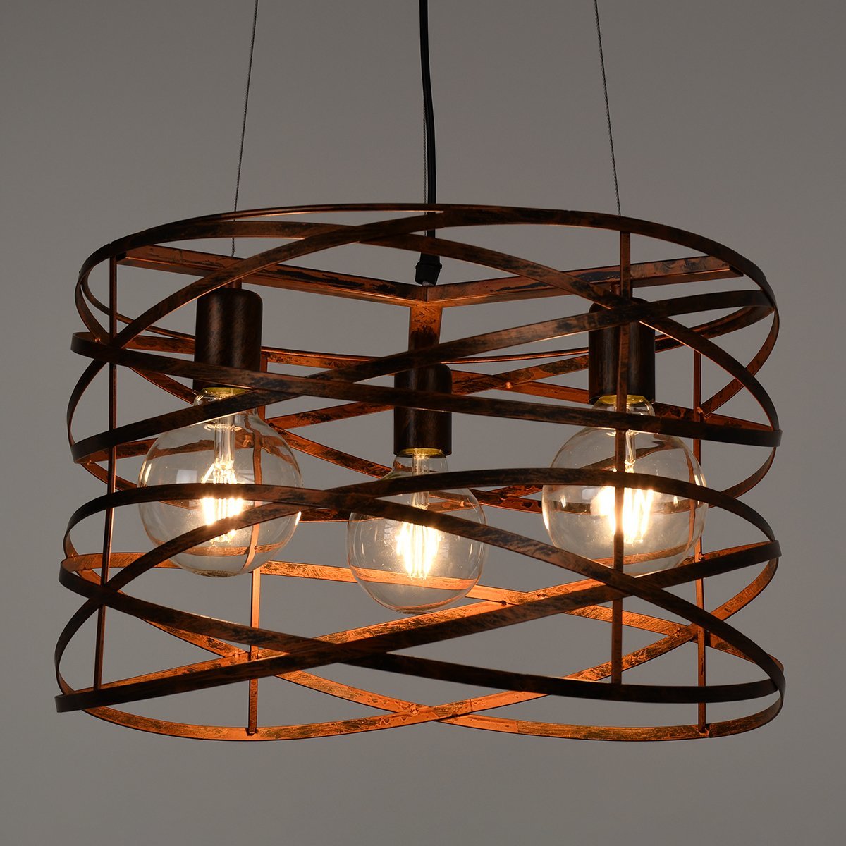 GLOBOSTAR® TOKEN 00856 Μοντέρνο Κρεμαστό Φωτιστικό Οροφής με Ντουί 3 x E27 AC 220-240V IP20 – Χάλκινο Εφέ Σκουριάς – Μ43 x Π43 x Υ29cm