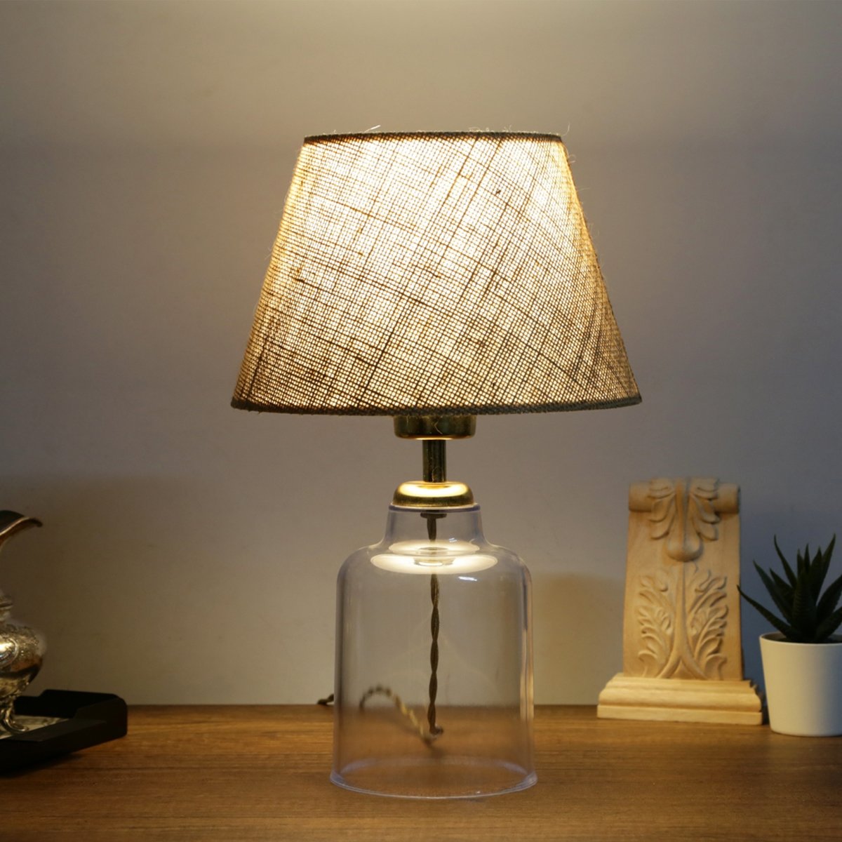 GLOBOSTAR® TRANS 204-0055 Μοντέρνο Επιτραπέζιο Φωτιστικό Πορτατίφ με Ντουί 1 x E27 AC 220-240V IP20 – Διάφανο & Μπεζ – Μ22 x Π22 x Υ14cm