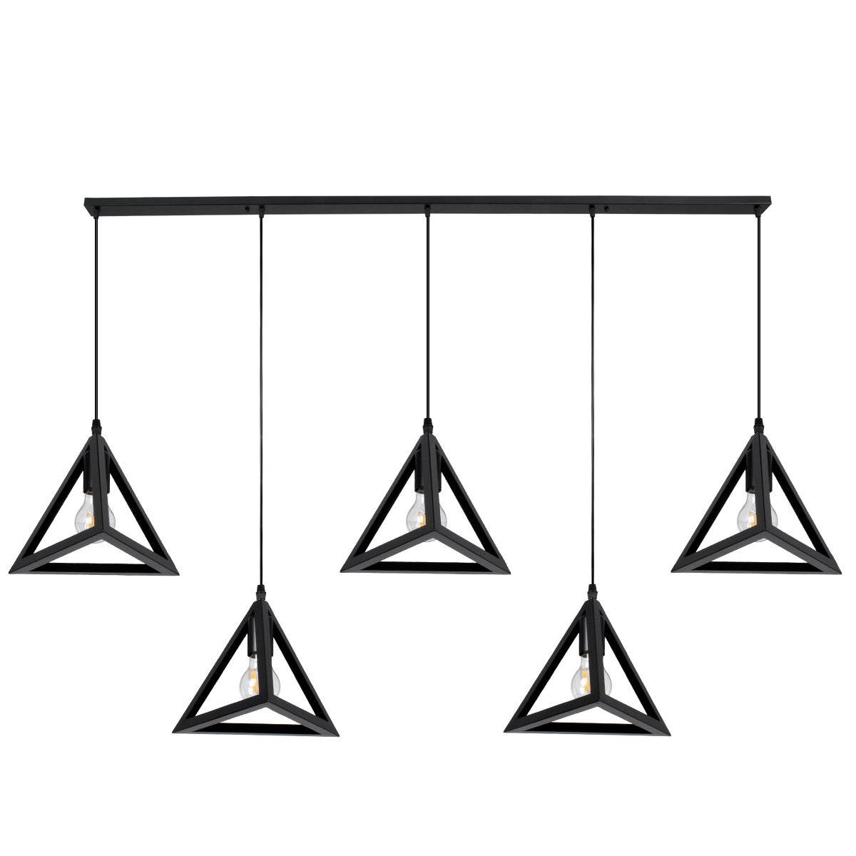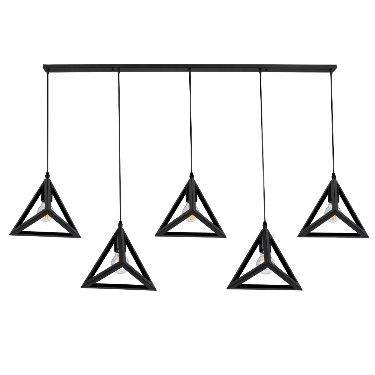 GLOBOSTAR® TRIANGLE 00608 Μοντέρνο Κρεμαστό Φωτιστικό Οροφής με Ντουί 5 x E27 AC 220-240V IP20 – Μαύρο – Μ170 x Π22 x Y130cm