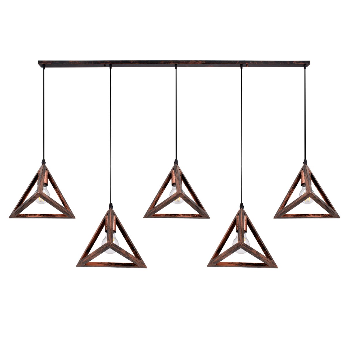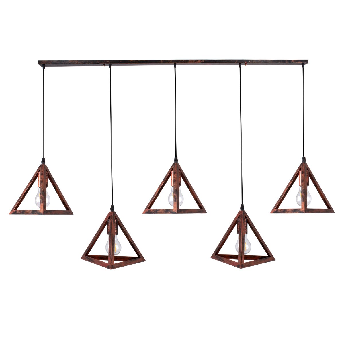 GLOBOSTAR® TRIANGLE 00609 Μοντέρνο Κρεμαστό Φωτιστικό Οροφής με Ντουί 5 x E27 AC 220-240V IP20 – Χάλκινο – Μ170 x Π22 x Y130cm