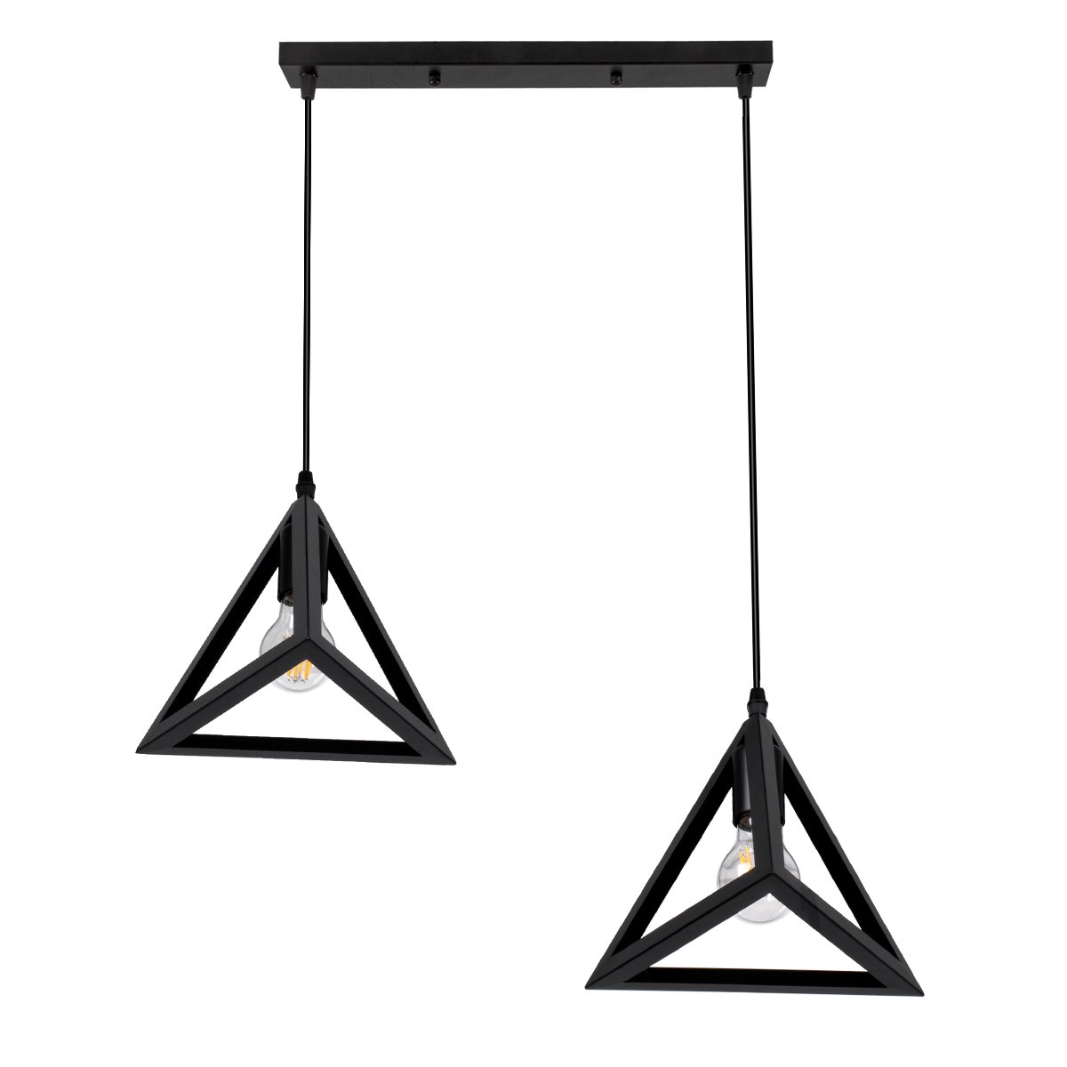 GLOBOSTAR® TRIANGLE 00611 Μοντέρνο Κρεμαστό Φωτιστικό Οροφής με Ντουί 2 x E27 AC 220-240V IP20 – Μαύρο – Μ60 x Π22 x Y130cm