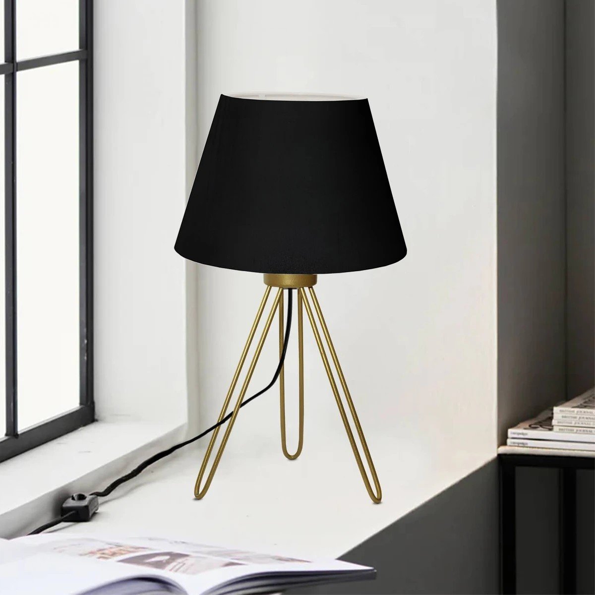 GLOBOSTAR® TRIP 204-0085 Μοντέρνο Επιτραπέζιο Φωτιστικό Πορτατίφ με Ντουί 1 x E27 AC 220-240V IP20 – Χρυσό & Μαύρο – Μ22 x Π22 x Υ33cm