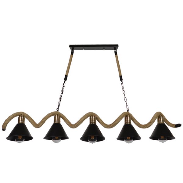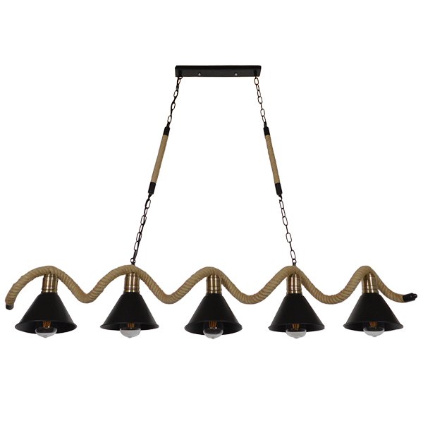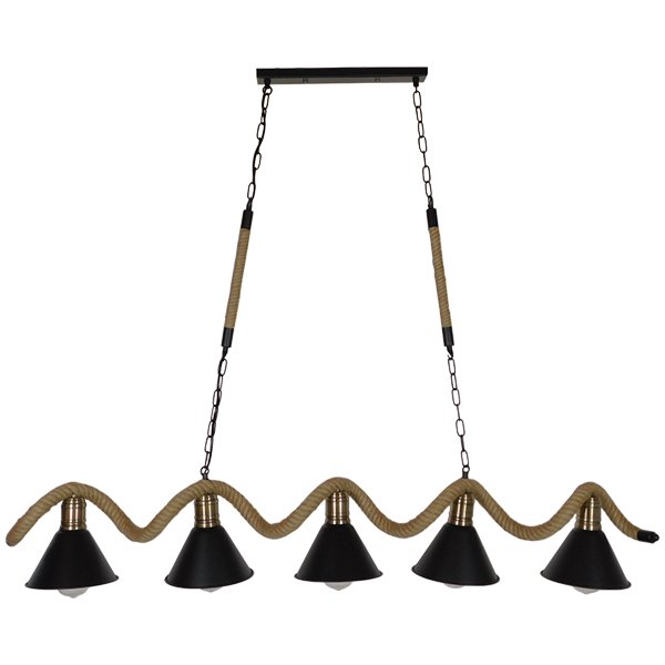 GloboStar® TYMEN 01190 Vintage Φωτιστικό Οροφής Πολύφωτο Μαύρο Μεταλλικό Καμπάνα με Μπεζ Σχοινί Μ150 x Π22 x Υ23cm