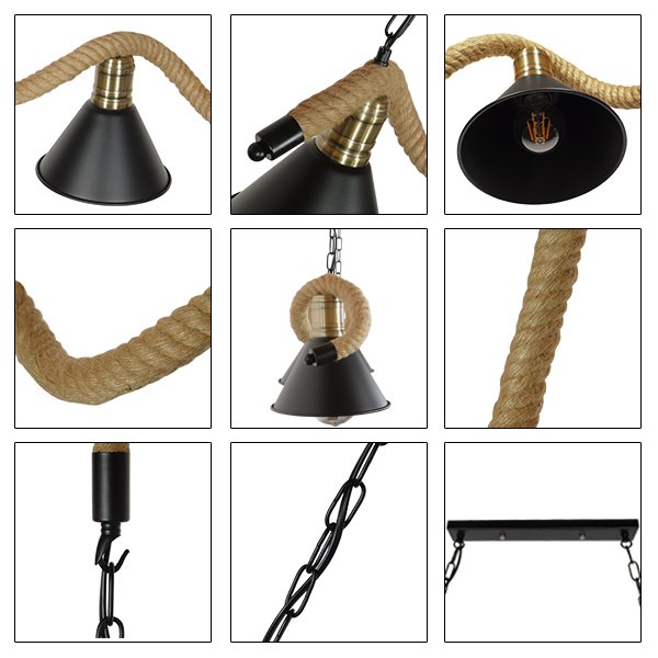 - Χρώμα Φωτιστικού: Μαύρο με Μπεζ Σχοινί