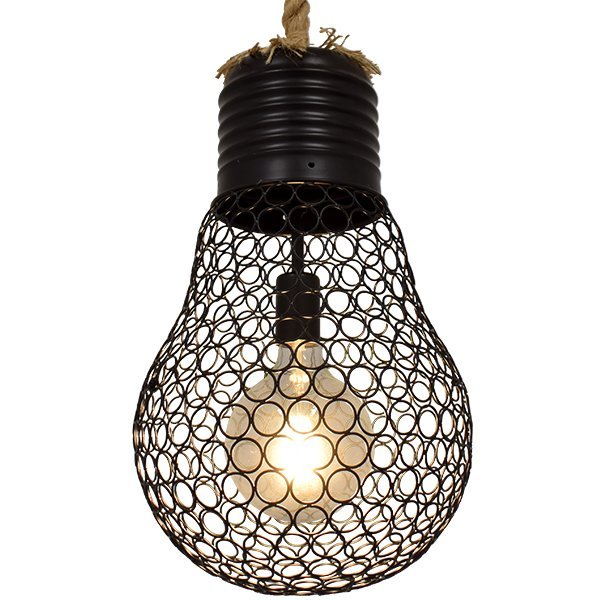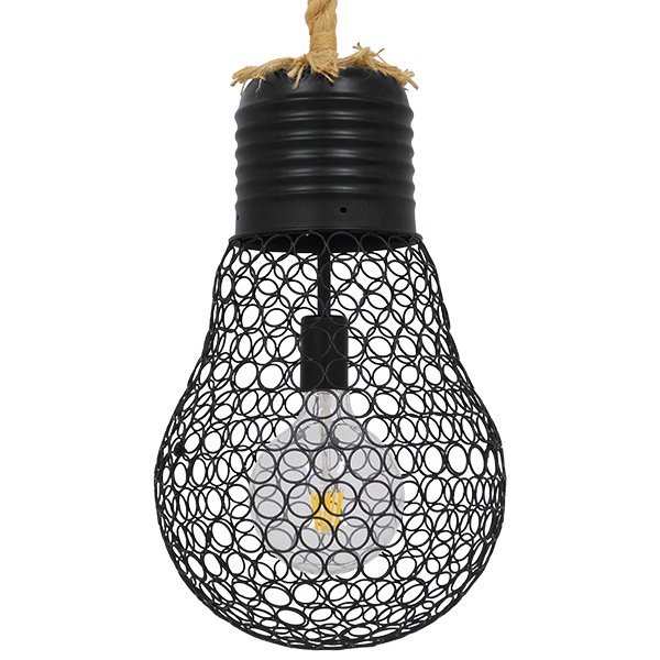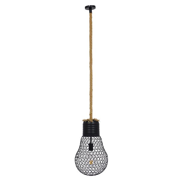 GloboStar® URBAN 01522 Vintage Industrial Κρεμαστό Φωτιστικό Οροφής Μονόφωτο Μαύρο Μεταλλικό Πλέγμα με Μπεζ Σχοινί Φ28 x Υ40cm