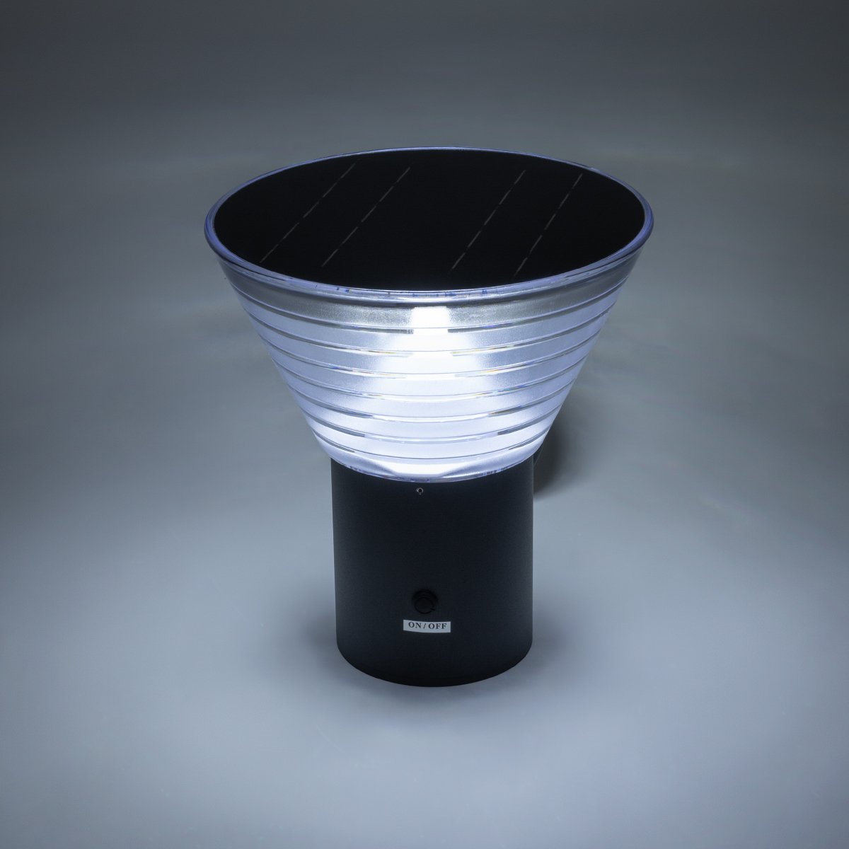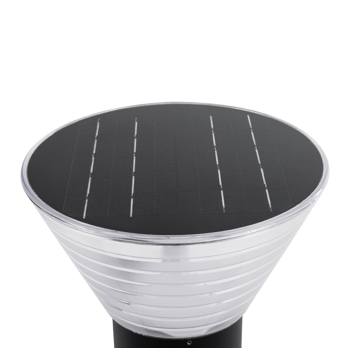 GLOBOSTAR® VEGGIE 90530 Φωτιστικό Κολωνάκι Κήπου LED 10W 330lm 120° με Ενσωματωμένο Φωτοβολταϊκό Panel 6V 2W & Επαναφορτιζόμενη Μπαταρία Li-ion 3.2V 1800mAh με Αισθητήρα Ημέρας-Νύχτας Αδιάβροχο IP65 Ψυχρό Λευκό 6000K – Γκρι Ανθρακί – Μ23 x Π30 x Υ25cm – 2 Χρόνια Εγγύηση