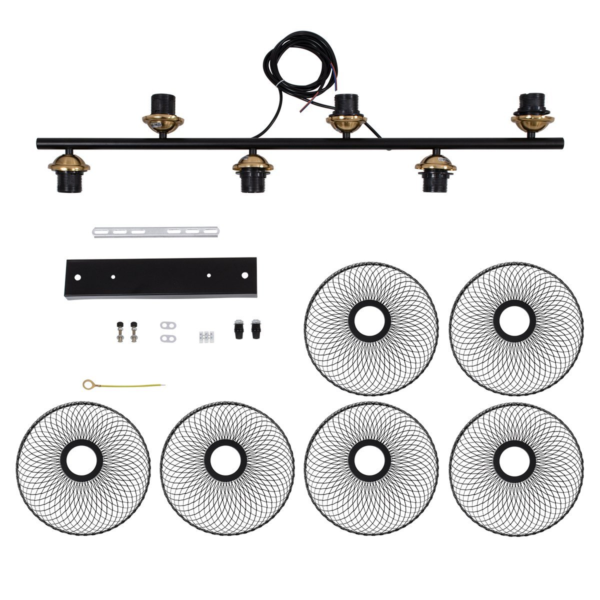 GLOBOSTAR® VERONA 00587 Μοντέρνο Κρεμαστό Φωτιστικό Οροφής με Ντουί 6 x E27 AC 220-240V IP20 – Μαύρο & Χρυσό – Μ100 x Π28 x Υ20cm