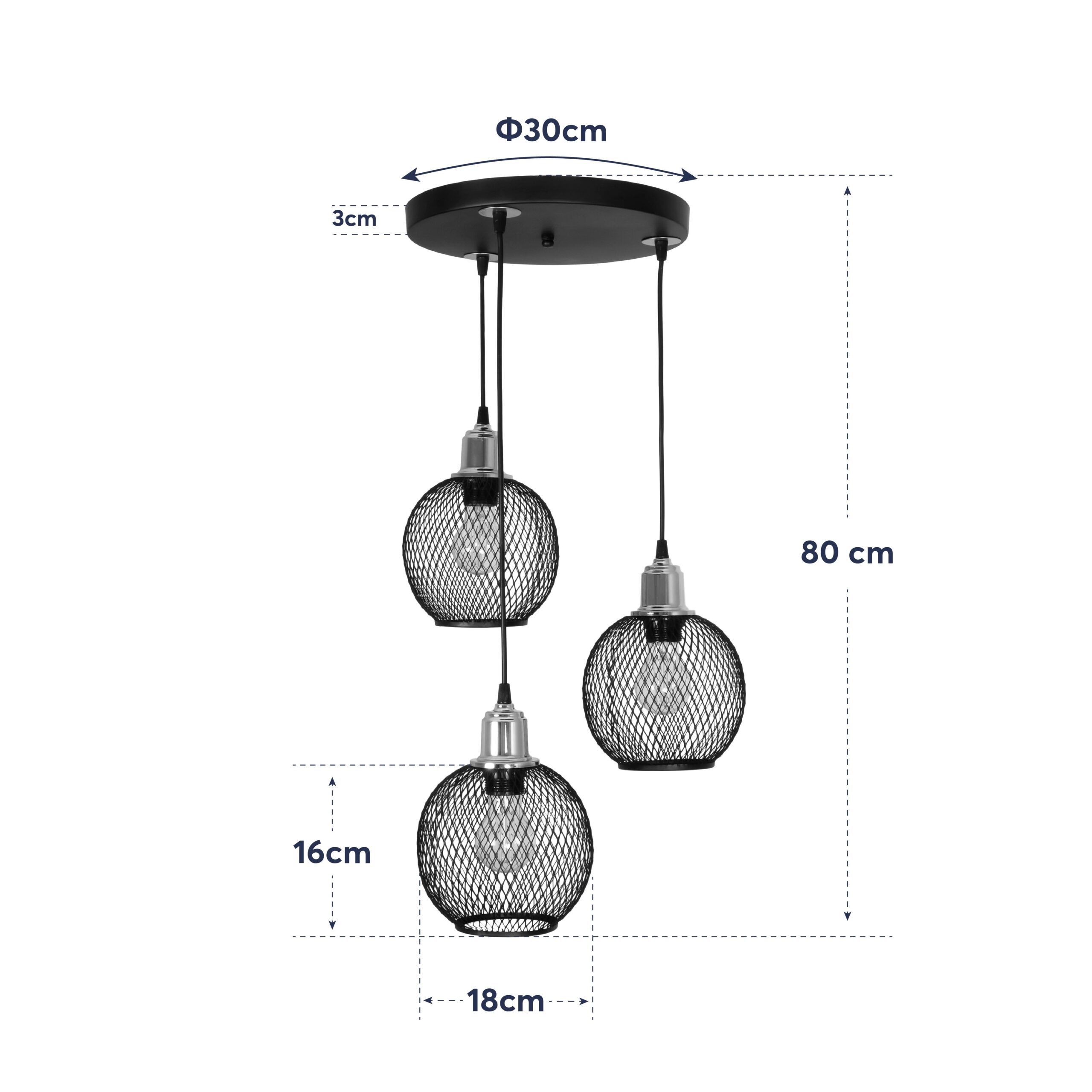 GLOBOSTAR® VIVIDUS 201-0020 Vintage Κρεμαστό Φωτιστικό Οροφής με Ντουί 3 x E27 AC 220-240V IP20 – Μαύρο & Χρυσό – Μ40 x Π40 x Υ60cm