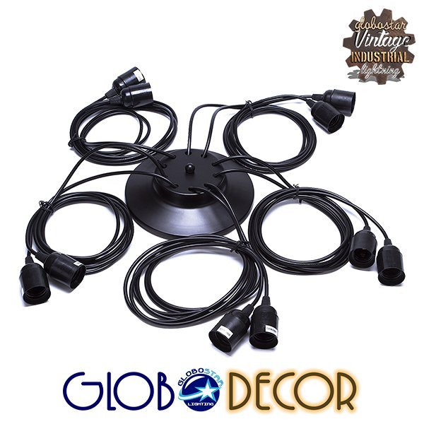 GLOBOSTAR® WIRED 01173 Vintage Κρεμαστό Φωτιστικό Οροφής με Ντουί 10 x E27 AC 220-240V IP20 – Μαύρο – Μ200 x Π200 x Υ100cm