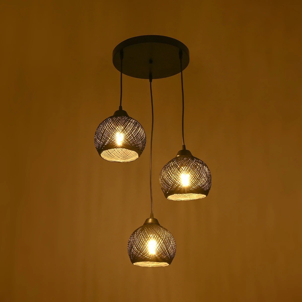 GLOBOSTAR® YASAM 203-0022 Vintage Κρεμαστό Φωτιστικό Οροφής με Ντουί 3 x E27 AC 220-240V IP20 – Μαύρο – Μ42 x Π42 x Υ54cm