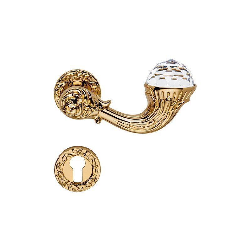 Κάθε πόμολο διαθέτει εντυπωσιακές διακοσμητικές ενθέσεις που προσφέρουν αίσθηση βάθους, ενώ το κεντρικό στοιχείο είναι το εντυπωσιακό Swarovski® κρύσταλλο, που αναδεικνύει την υψηλή τέχνη και την αριστοκρατική ποιότητα.