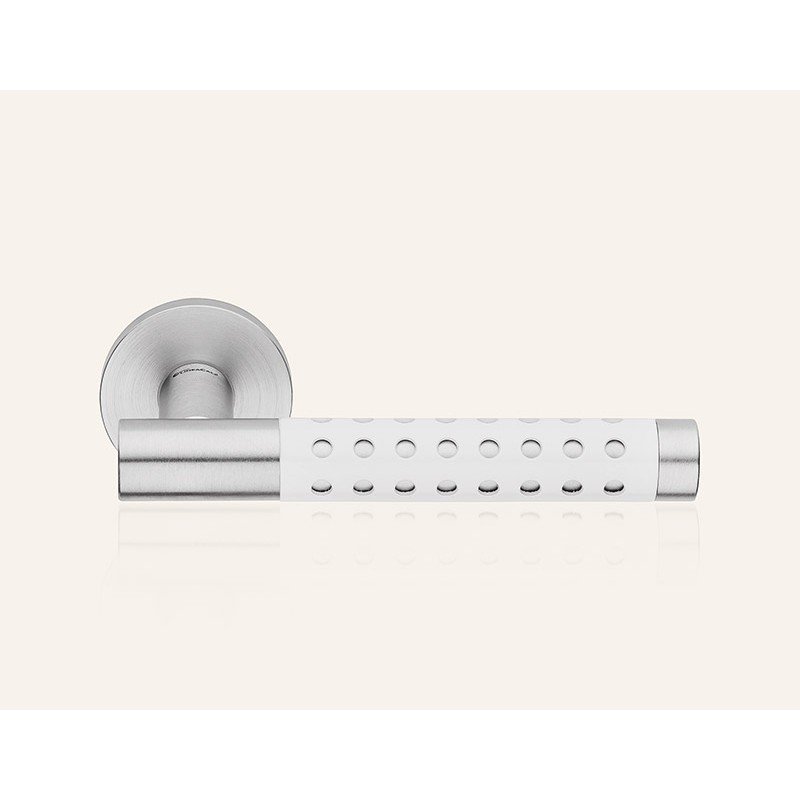 Ιταλικό Πόμολο Cavity με ροζέτα σε Χρώμιο Σατινέ/Ματ Λευκό(RAL) 025
