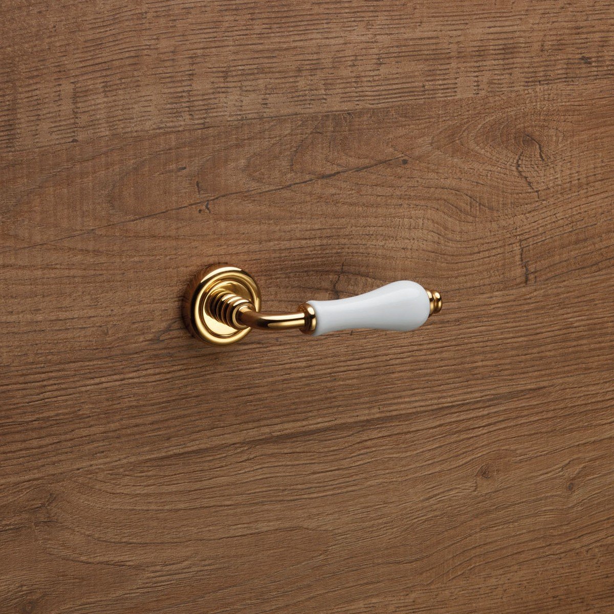 Η ροζέτα ταιριάζει με τα στενά ξύλινα προφίλ, ενώ οι καμπύλες και οι λεπτομέρειες της λαβής προσφέρουν μια κομψή και ισχυρή αίσθηση αρμονίας.