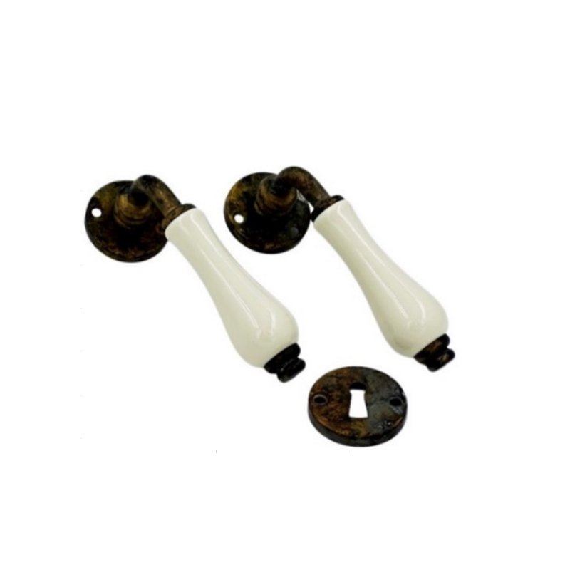 Ιταλικό Πόμολο Πόρτας Αντικέ με Πορσελάνη Κρεμ