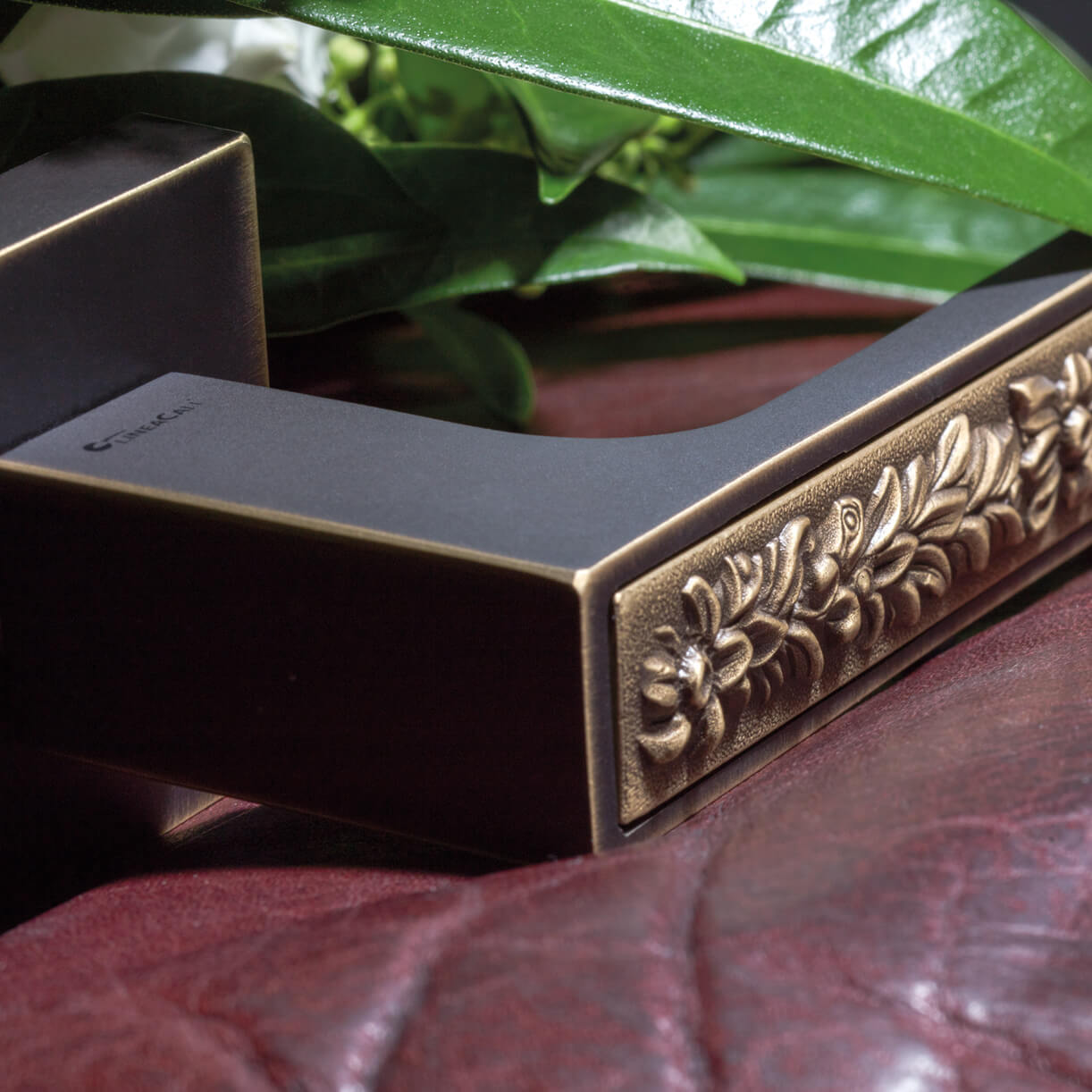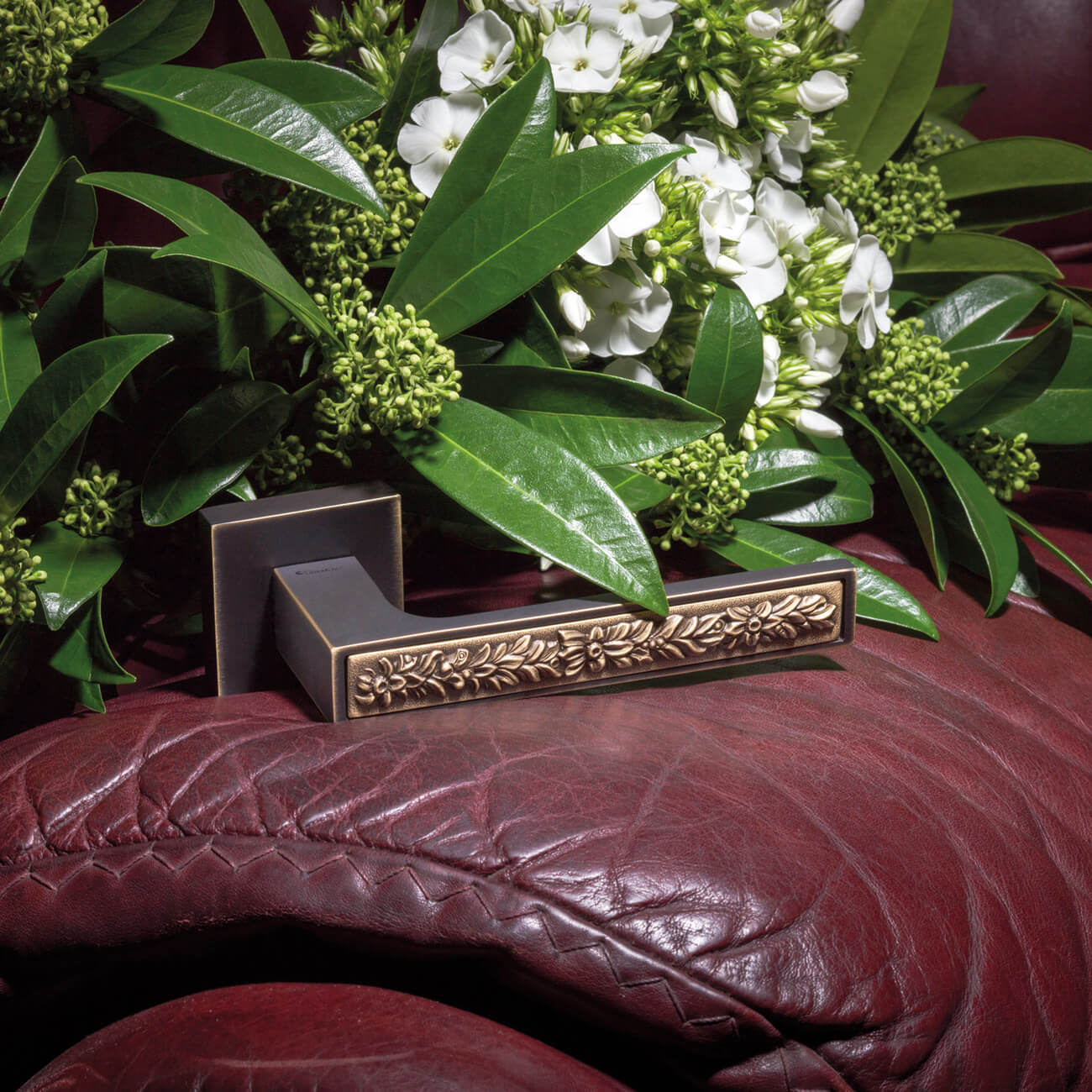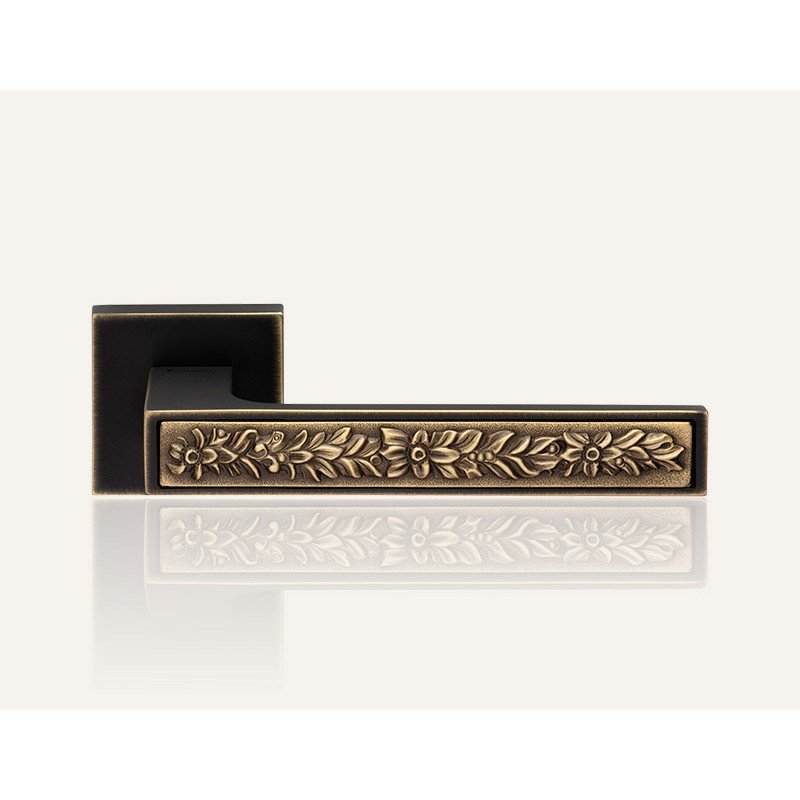 Η λαβή έχει ρομαντικά λουλουδάτα σχέδια και διατίθεται σε συνδυασμούς φινιρισμάτων όπως χρυσό/χρώμιο, χρώμιο/ματ μαύρο και μπρονζέ.