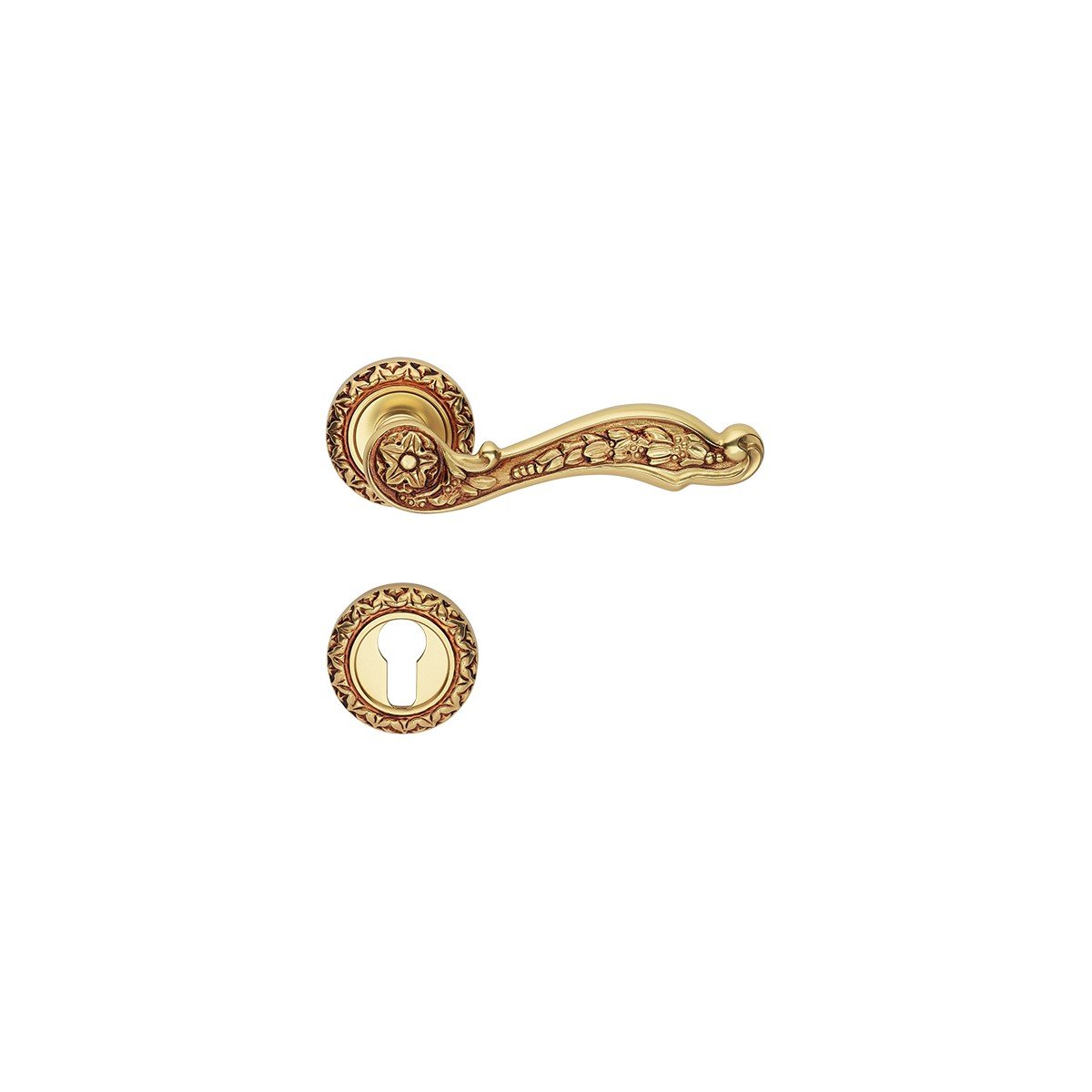 Δεν πρόκειται απλά για ένα μοτίβο, αλλά για ένα καλαίσθητο σχέδιο με λουλούδια, που φαίνεται ιδιαίτερα γύρω από την τρύπα της κλειδαριάς.