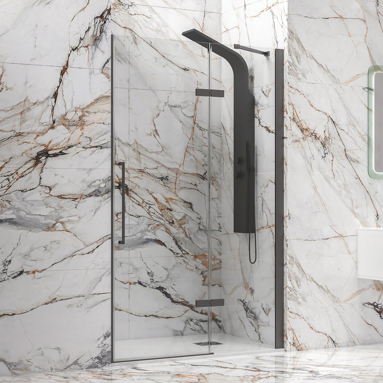 Καμπίνα από τοίχο σε τοίχο με διάφανο κρύσταλλο TINOS 400 Gun Metal KARAG 100x200cm