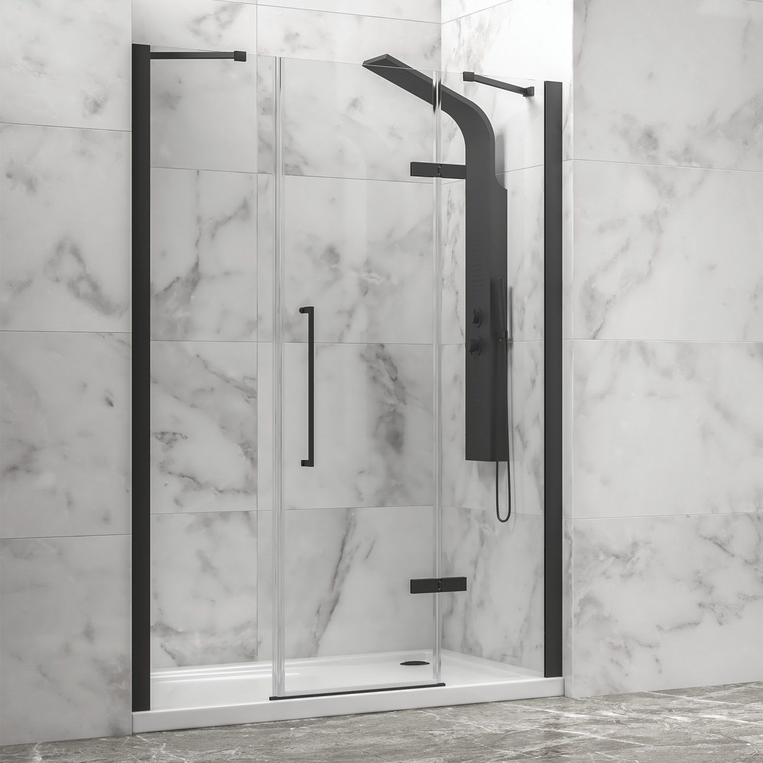Καμπίνα από τοίχο σε τοίχο με διάφανο κρύσταλλο TINOS 600 Black KARAG 170x200cm (σταθερό 26cm)