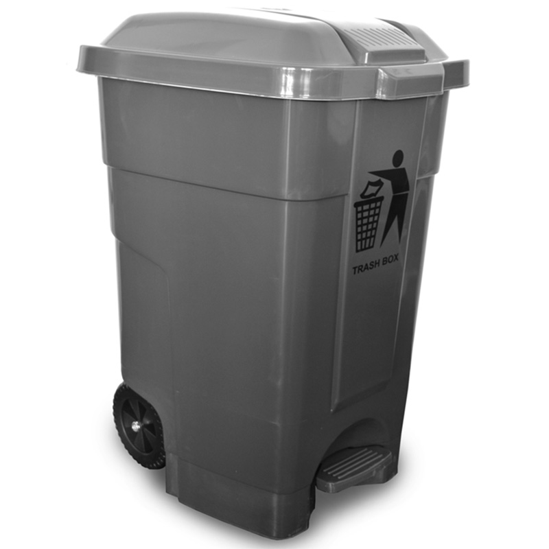 Τροχήλατος κάδος απορριμμάτων 70 λίτρων με πεντάλ, ιδανικός για εύκολο και υγιεινό άνοιγμα χωρίς χρήση χεριών.