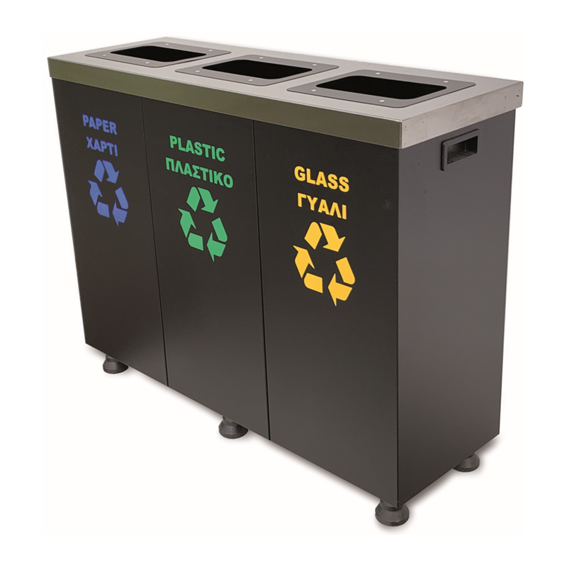 Κάδος ανακύκλωσης μεταλλικός τριπλός, ιδανικός για επαγγελματικούς και δημόσιους χώρους όπως γραφεία, ξενοδοχεία, καταστήματα και χώρους εστίασης. Διαθέτει τρεις ξεχωριστούς χώρους για εύκολο διαχωρισμό απορριμμάτων, προσφέροντας πρακτική και οργανωμένη ανακύκλωση. Η ανθεκτική μεταλλική κατασκευή εξασφαλίζει μεγάλη διάρκεια ζωής και σταθερότητα.