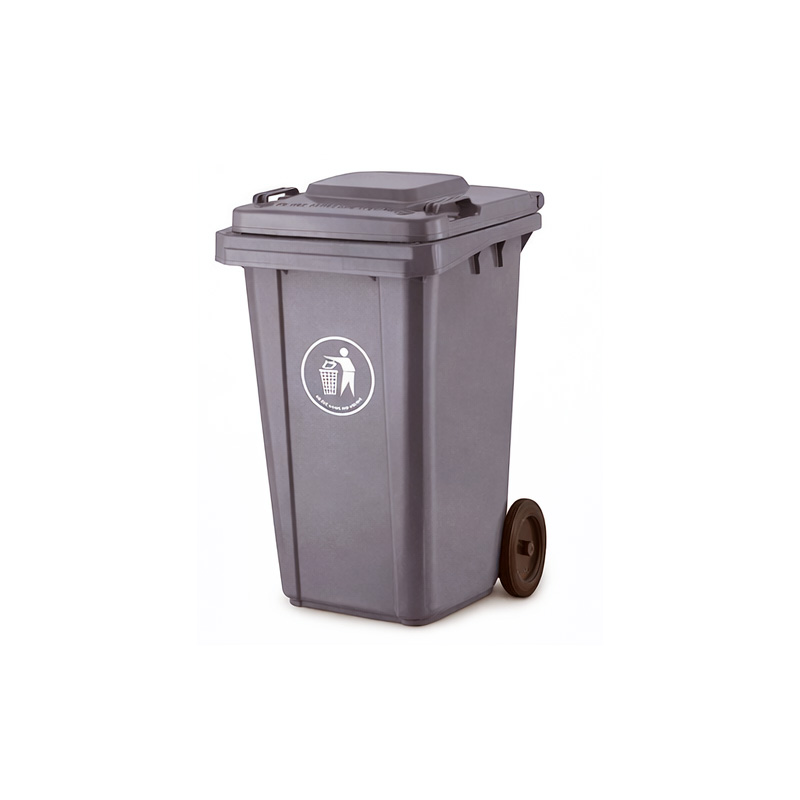 Πλαστικός κάδος απορριμμάτων 240 λίτρων σε γκρί χρώμα, κατασκευασμένος από ανθεκτικό πλαστικό για καθημερινή χρήση. Διαθέτει καπάκι για περιορισμό οσμών και ρόδες για εύκολη μετακίνηση. Ιδανικός για οικιακούς και επαγγελματικούς χώρους, καθώς και για ανακύκλωση. Διαστάσεις: 58 x 71 x 101 cm