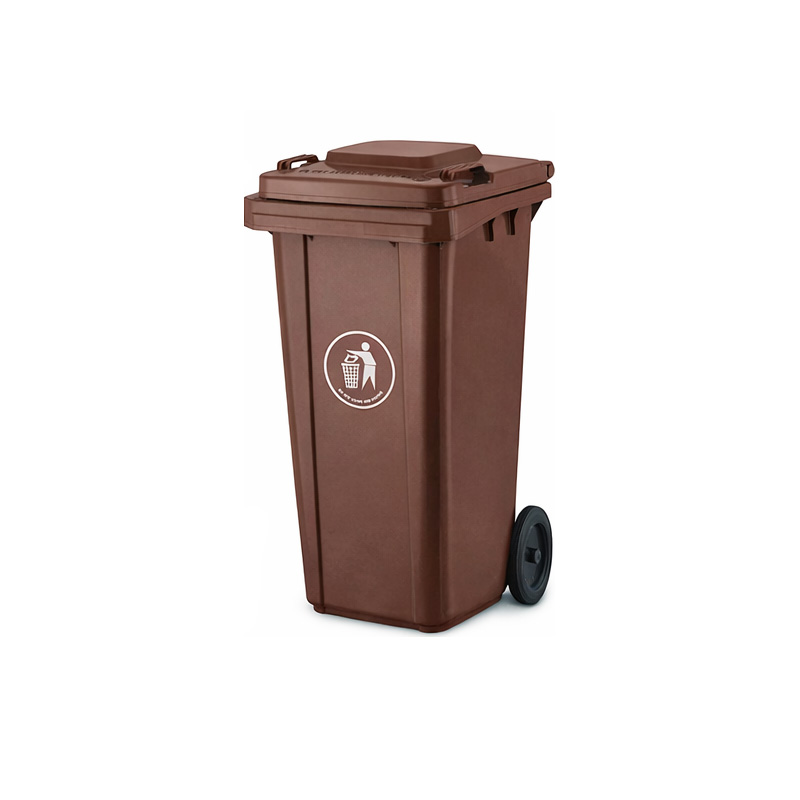 Πλαστικός κάδος απορριμμάτων 240 λίτρων σε καφέ χρώμα, κατασκευασμένος από ανθεκτικό πλαστικό για καθημερινή χρήση.