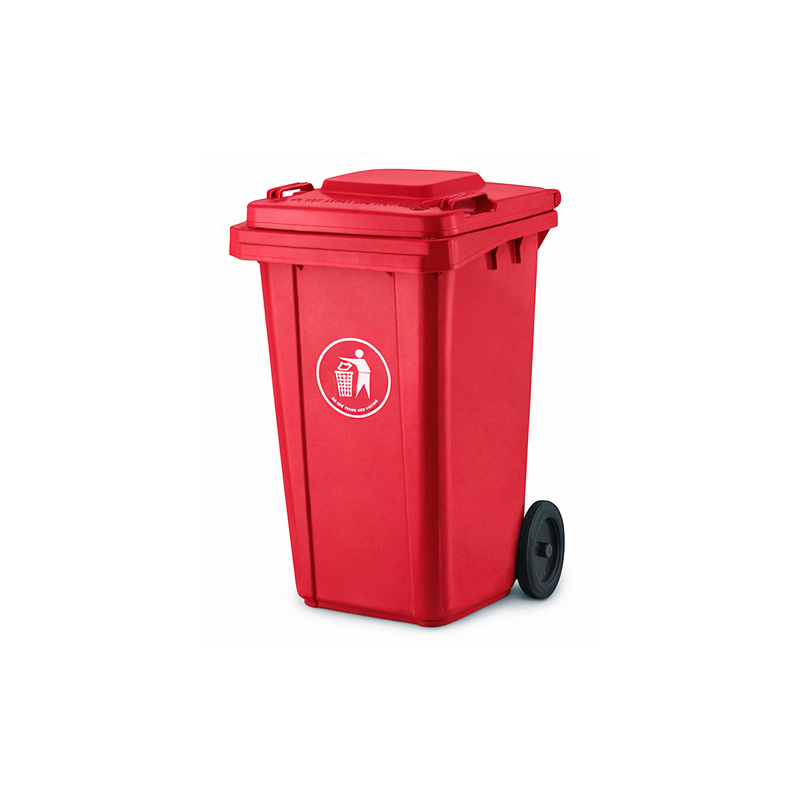 Πλαστικός κάδος απορριμμάτων 240 λίτρων σε κόκκινο χρώμα, κατασκευασμένος από ανθεκτικό πλαστικό για καθημερινή χρήση. Διαθέτει καπάκι για περιορισμό οσμών και ρόδες για εύκολη μετακίνηση. Ιδανικός για οικιακούς και επαγγελματικούς χώρους, καθώς και για ανακύκλωση. Διαστάσεις: 58 x 71 x 101 cm
