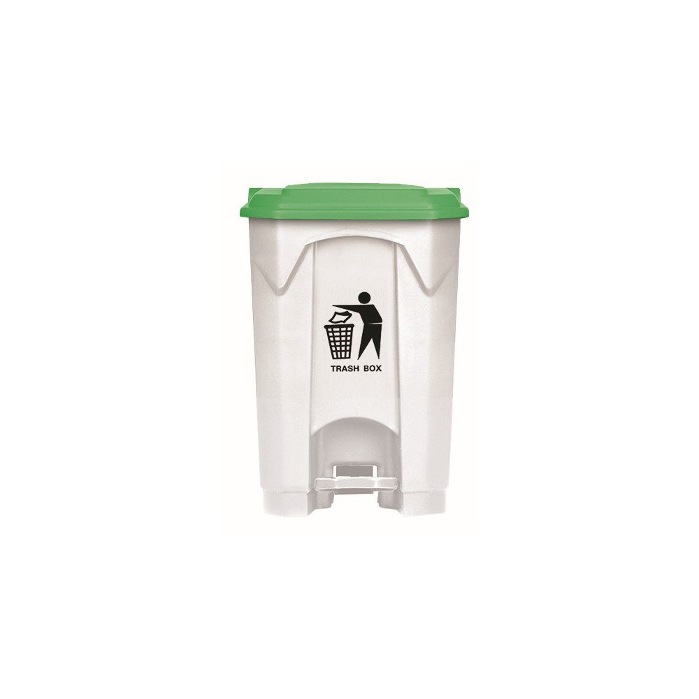 Ο πλαστικός κάδος απορριμμάτων 68 λίτρων με κάδο σε λευκό χρώμα και πράσινο καπάκι αποτελεί πρακτική και ανθεκτική επιλογή για την καθημερινή διαχείριση απορριμμάτων.