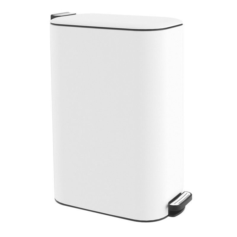 Ανοξείδωτος κάδος απορριμμάτων 16 λίτρων με πεντάλ, σε κομψό λευκό ματ φινίρισμα.